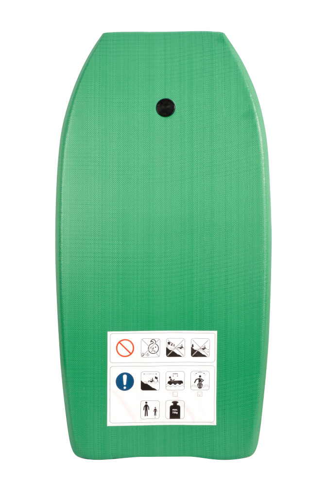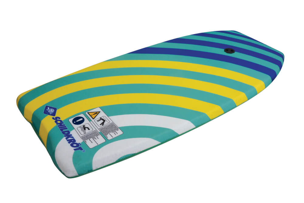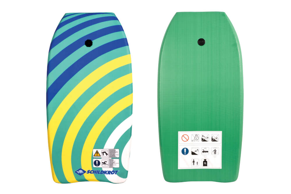Bodyboard mit Nylonüberzug, stromlinienförmig, trendiges neues Design, EPS Schaumstoff-Kern, 93x46x5cm, incl. Fangriemen ca. 90cm (Leine mit Klett, um das Board am Handgelenk zu fixieren), 450g. maximale Belastung 75kg.
