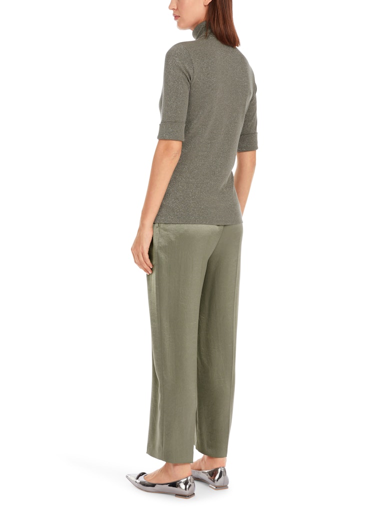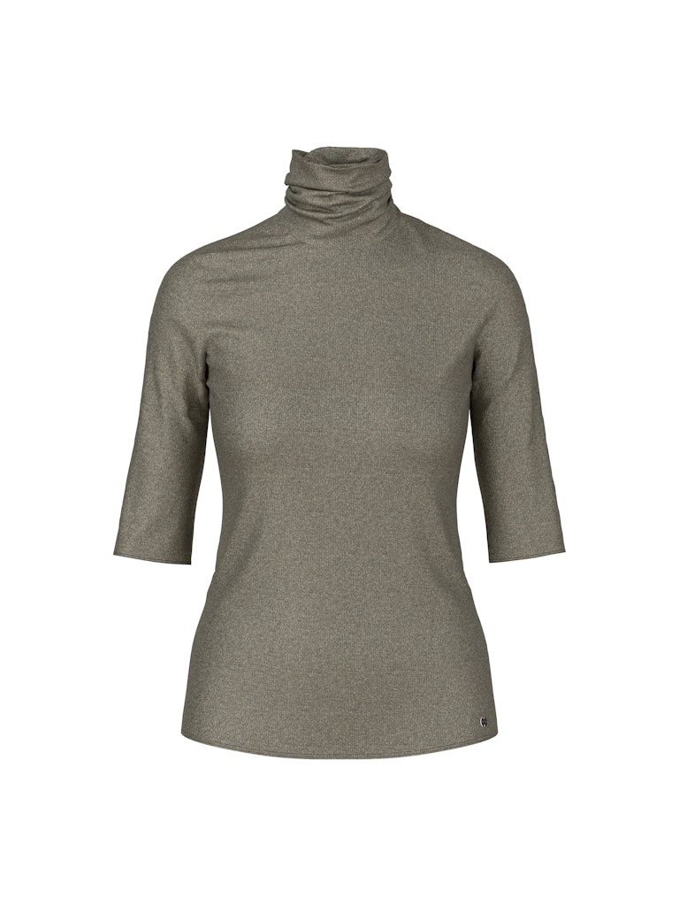 Schimmerndes Lurex-Basic|Mit seinem schimmernden Lurex-Glanz ist dieses T-Shirt ein ideales Basic für besondere Anlässe. Es besitzt einen figurnahen Schnitt mit Rollkragen. Die halblangen Ärmel unterstreichen den edlen Stil. Dank Elasthananteil trägt sich das Rippstrick-Oberteil sehr angenehm.|Figurnaher Schnitt|Halblange Ärmel|Mit Rollkragen|Feiner Rippenstrick mit Elasthan|Das Model ist 179 cm groß und trägt N3/38.