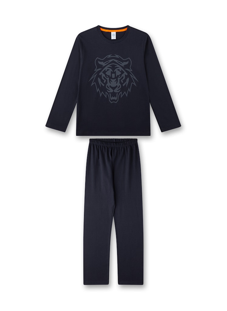 Ausdrucksstarker Schlafanzug von Sanetta für Jungen mit coolem Tiger-Konterfei auf dem Oberteil.