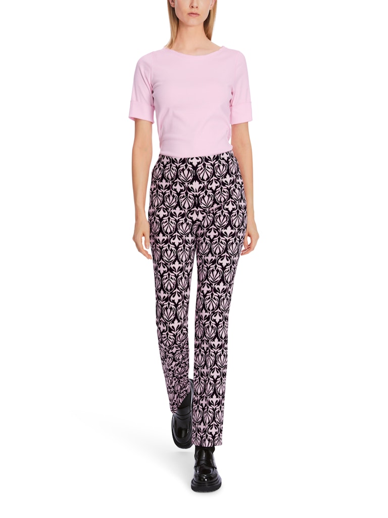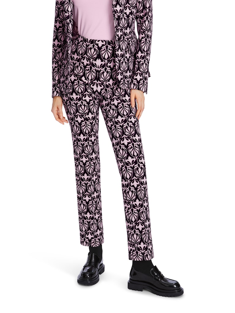 Scuba-Jersey Modell FATSA mit Ornamenten|Mit ihrem auffälligen Ornamenten-Print ist die Hose FATSA ein garantierter Blickfang. Sie ist aus softem Scuba-Jersey gefertigt und überzeugt durch Tragekomfort im Feminine Fit. Passend dazu besitzt sie innenliegend einen bequemen Gummibund auf regulärer Höhe. Das lange Bein ist mit einer abgesteppten Bügelfalte versehen.|Langes Hosenbein|Softes Material|Made in Europe|FATSA - FEMININE FIT - REGULAR - Beinlänge: 32"|Das Model ist 179 cm groß und trägt N3/38.