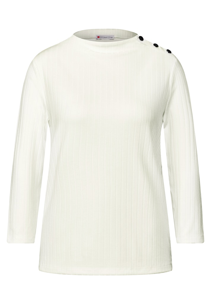 Dieses Shirt mit Knöpfen von Street One für Damen bringt eine besondere Note in dein Outfit. Das Shirt hat einen Turtleneck mit Knopfdetail und 3/4-Ärmel. Die Rippenstruktur sorgt für eine anschmiegsame Passform und einen modernen Look, während der Materialmix mit Stretchanteil für hohen Tragekomfort sorgt. Damenshirt Turtleneck mit Knopfdetail 3/4-Arm Rippstruktur Materialmix mit Stretchanteil Material: 62% Polyester, 32% Viskose, 6% Elasthan