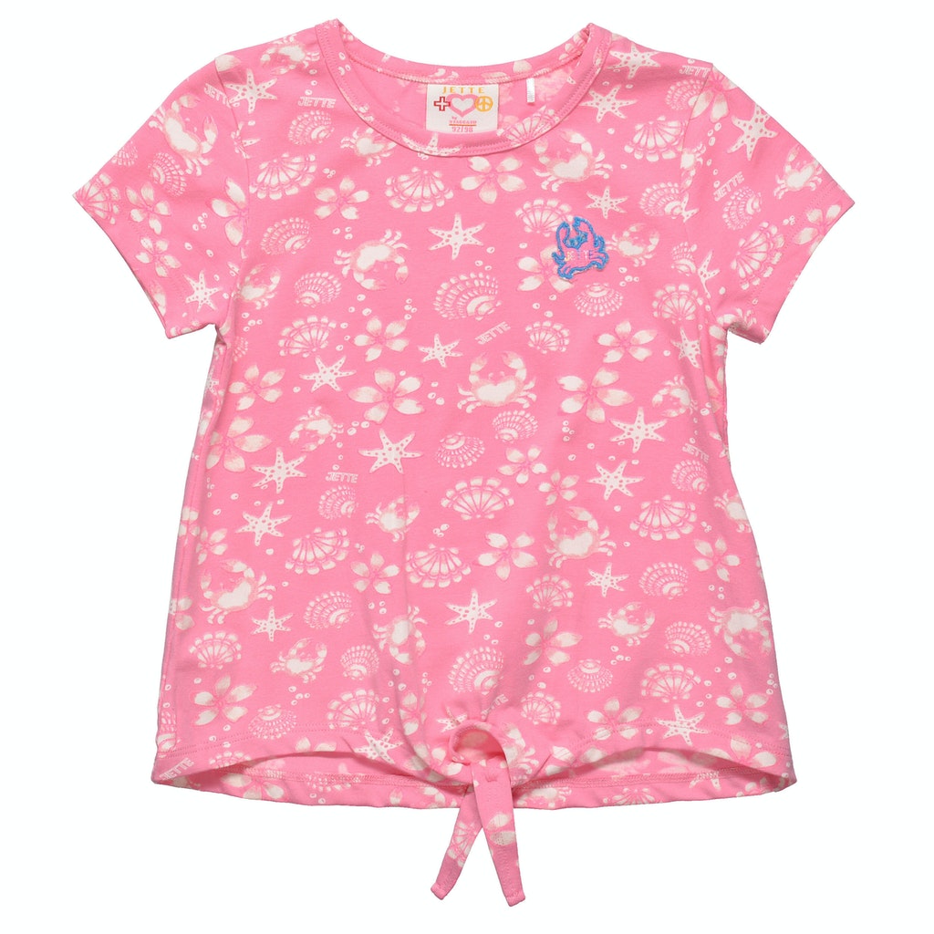 Ein sommerliches Must-Have für alle Girls! Dieses bezaubernde Shirt aus unserer JETTE Kollektion begeistert mit seinen zuckersüßen Allover-Print und einem coolen Knoten-Detail vorne am Saum.