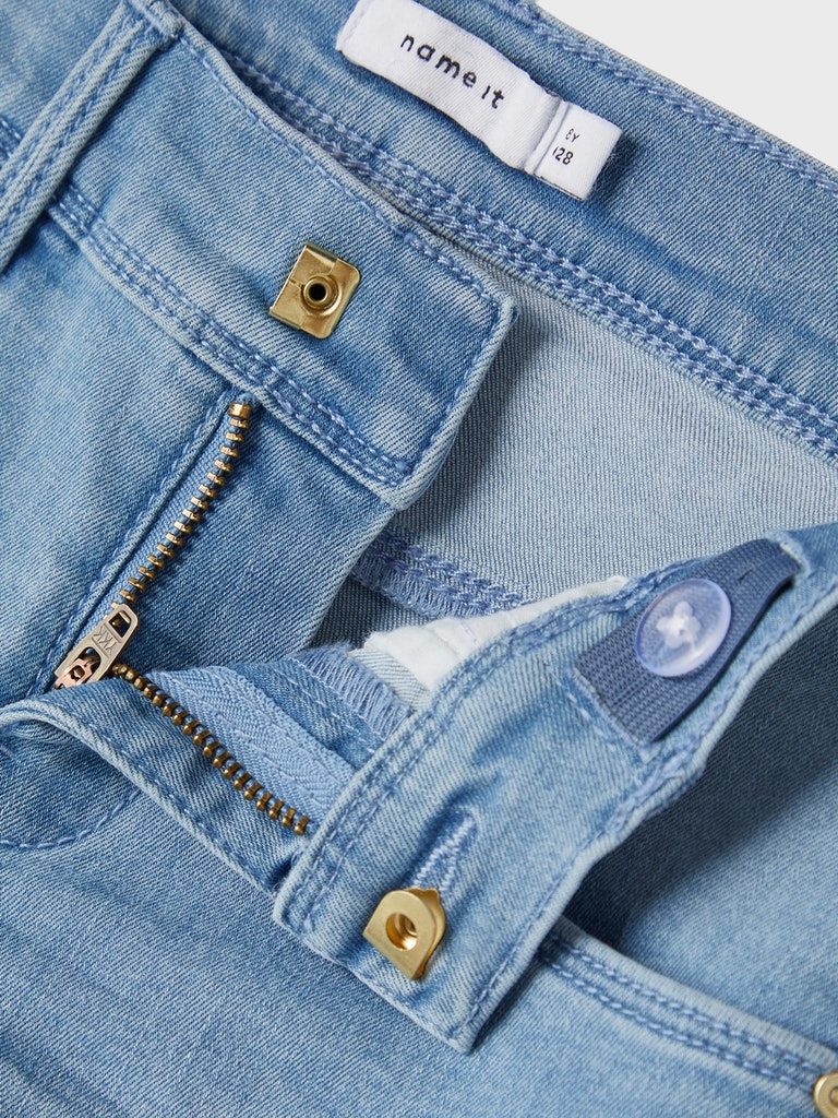 Kreiere mit hochwertigen Alltagsstyles das perfekte Outfit für dein Kind, das nicht nur bequem, sondern auch super trendy ist. Denim ist ein robuster Webstoff, der in vielen verschiedenen Designs erhältlich ist und einen einzigartigen Look schafft.- Detailart : Shorts- Stoff : Denim- Beindetails : Umgeschlagener Saum- Waist/Rise : Regular Waist- Finish : 3D-Knittereffekt- Verschluss/Hosenschlitz : Hosenschlitz mit Haken- und Reißverschluss- Weitere Details : Verstellbarer Bund- Tasche sonstige : Five-Pocket-Style mit trendigem Look- PASSFORM : Slim Fit
