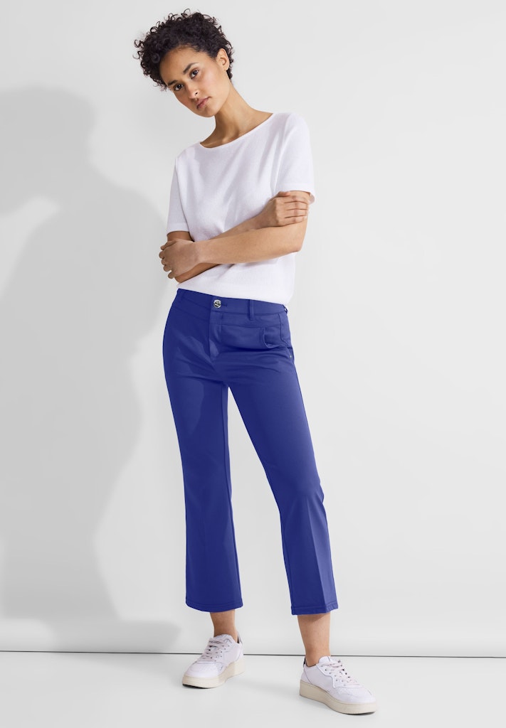 Die Street One 7/8 Bootcut Hose ist die perfekte Wahl für Damen, die einen stilsicheren und modernen Look suchen. Mit ihrem Slim Fit und den Bootcut Legs bietet sie eine trendige Passform, die deine Beine schmeichelhaft in Szene setzt. Der hohe Bund sorgt für einen bequemen Sitz, und die Techno Twill-Qualität mit Stretchanteil garantiert uneingeschränkte Bewegungsfreiheit.