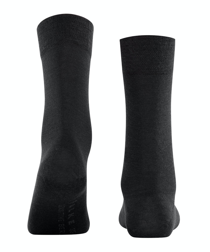 Dank der innovativen Kombination von weicher Merinowolle auf der Außen- und hautschmeichelnder Baumwolle auf der Innenseite zeichnet sich der FALKE Sensitive Berlin durch eine hervorragende Klimaregulierung und ein äußerst angenehmes Tragegefühl aus. Die hier verarbeitete Wolle stammt ausnahmslos von Farmen die zugunsten des Tierwohls auf Mulesing verzichten. Die Baumwolle wird ressourcenschonend und sozialverantwortlich angebaut geerntet und weiterverarbeitet. Das besonders weiche Sensitive-Bündchen sorgt in Kombination mit sehr flachen Nähten und der anatomischen FALKE-Passform für perfekten Sitz ohne dabei einzuengen. Dadurch eignet sich der FALKE Sensitive Berlin auch für besonders druckempfindliche Beine und Diabetiker. Sein feines Maschenbild erlaubt die Kombination sowohl zu Business- als auch zu Casual-Outfits.