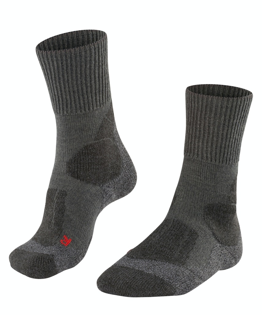 Mit ihrer extra starken Polsterung und ihrem Merinowoll-Mix sorgt die Wandersocke "TK1" für maximalen Schutz und gute Wärmeisolation bei ausgiebigen Bergtouren unter jeglichen Wetterbedingungen. Schneller Feuchtigkeitstransport sowie die optimale Passform garantieren perfekte Temperatur und hohen Komfort am Fuß.