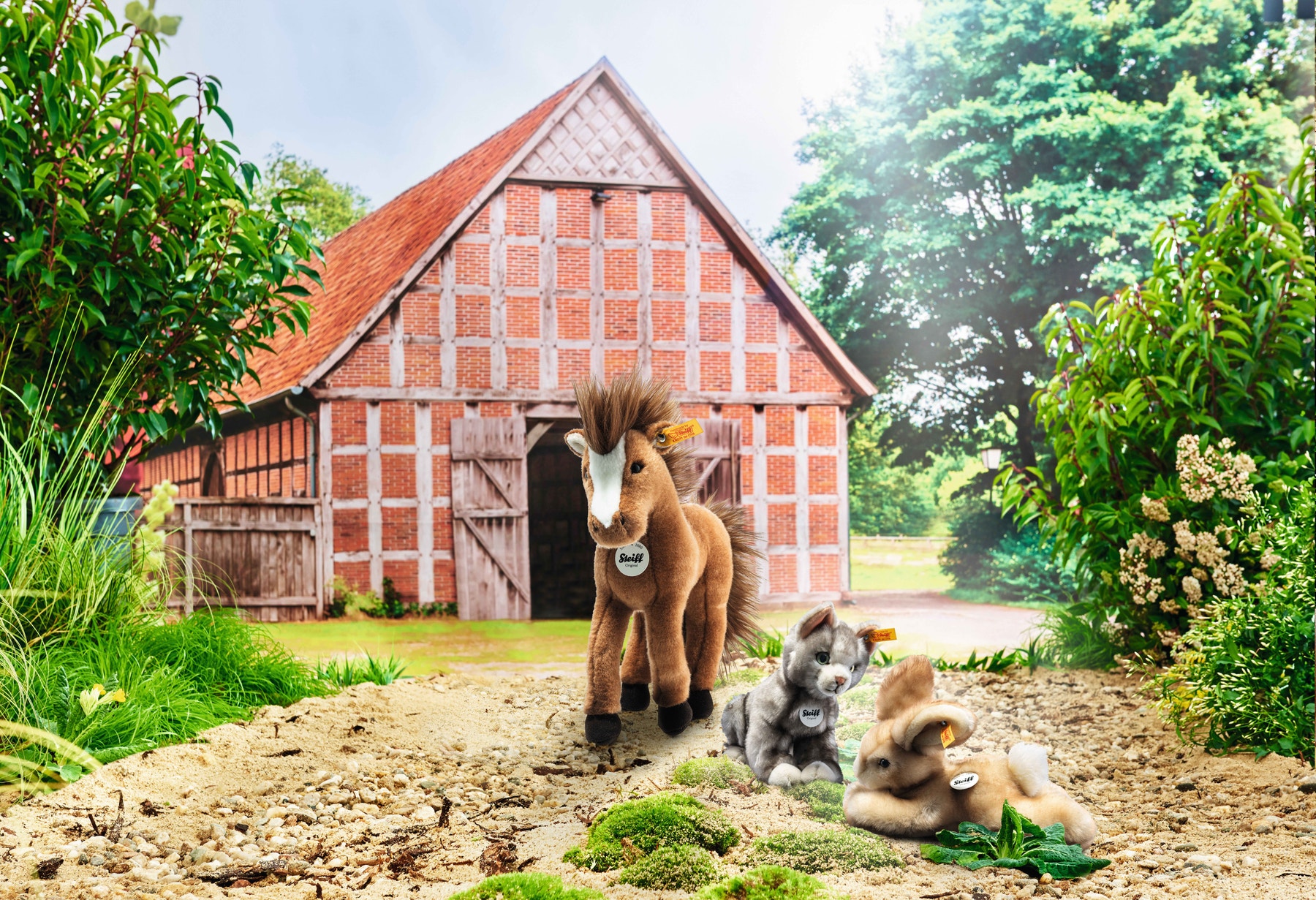 Ach, ist das gemütlich: sich ausstrecken, ein bisschen dösen, einen kleinen Tratsch mit den anderen halten und neue Pläne schmieden. Der 24 cm große, beigefarbene Schnucki Hase hat im Steiff Atelier alles erhalten, was einen Gemütshasen auszeichnet: Die Fasern seines kuscheligen, lebendig changierenden Plüschs glänzen im Sonnenlicht. Schnauze, Innenohren und der kleine Puschel auf dem Hasenpopo bilden Kontraste in Creme und Weiß. Dazu kommen Airbrush-Akzente an Mund, Nase, Augenwinkeln und Ohren. Seine Vorderpfoten schmiegen sich sanft aneinander und formen für alle Fälle ein gemütliches Kissen. Knuddeln und streicheln machen ihn glücklich. Und er lässt sich gerne für eine Gutenachtgeschichte in den Arm nehmen. Im Moment allerdings - im Moment hat Schnucki Hase in nächster Nähe frischen Klee entdeckt. Und trifft eine spontane Entscheidung (weil Liebe auch durch den Magen geht)!