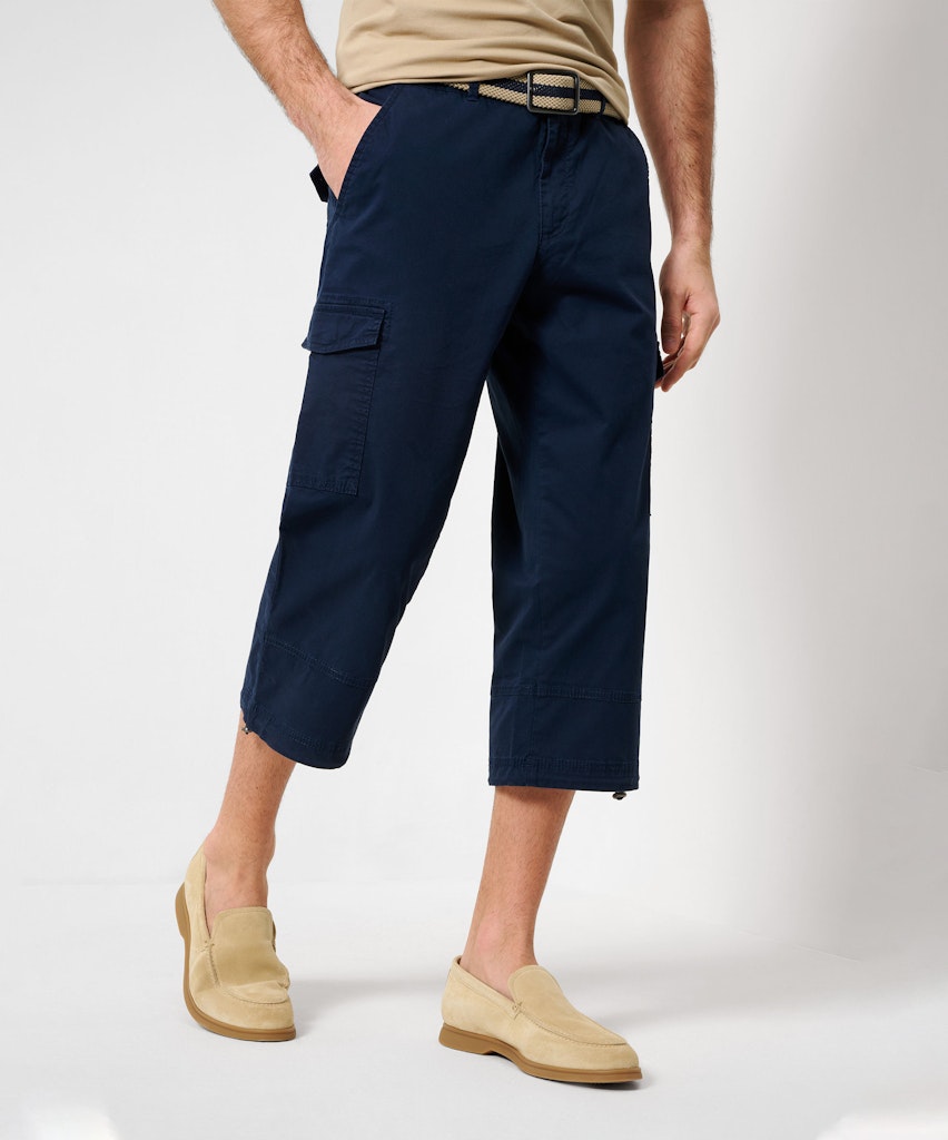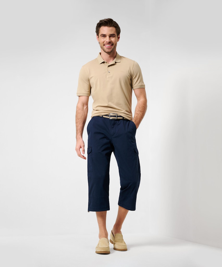 Für Herren ist der Style BRADY ein Allrounder. In Kombination mit Shirts und Sneakern vervollständigt diese 3/4-Hose Ihr legeres Outfit. Die Relaxed Fit Herrenhose hat eine entspannte Passform mit geradem Schnitt und regulärer Bundhöhe. Ergänzt mit sportivem Tunnelzug im Saum. Durch die Cargotaschen erhält die Hose das praktische Extra. Sie ist zusätzlich mit dezenten Ziernieten gestaltet. Mit charakteristischer Köperbindung gewebt, ist der Twill strapazierfähig, robust und langlebig. Bei dieser Cargohose bietet der unempfindliche und hautfreundliche Baumwollmix zudem ein exzellentes Tragegefühl.Form: