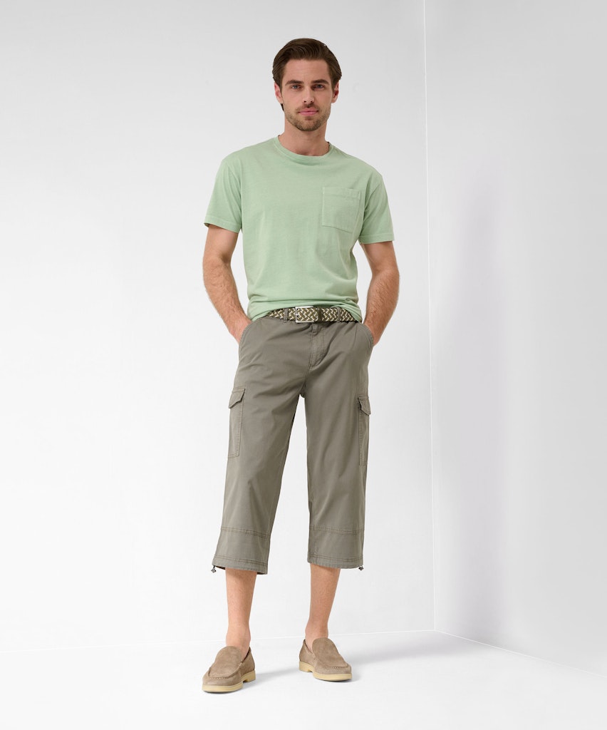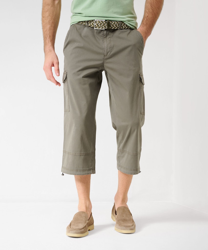 Für Herren ist der Style BRADY ein Allrounder. In Kombination mit Shirts und Sneakern vervollständigt diese 3/4-Hose Ihr legeres Outfit. Die Relaxed Fit Herrenhose hat eine entspannte Passform mit geradem Schnitt und regulärer Bundhöhe. Ergänzt mit sportivem Tunnelzug im Saum. Durch die Cargotaschen erhält die Hose das praktische Extra. Sie ist zusätzlich mit dezenten Ziernieten gestaltet. Mit charakteristischer Köperbindung gewebt, ist der Twill strapazierfähig, robust und langlebig. Bei dieser Cargohose bietet der unempfindliche und hautfreundliche Baumwollmix zudem ein exzellentes Tragegefühl.Form: