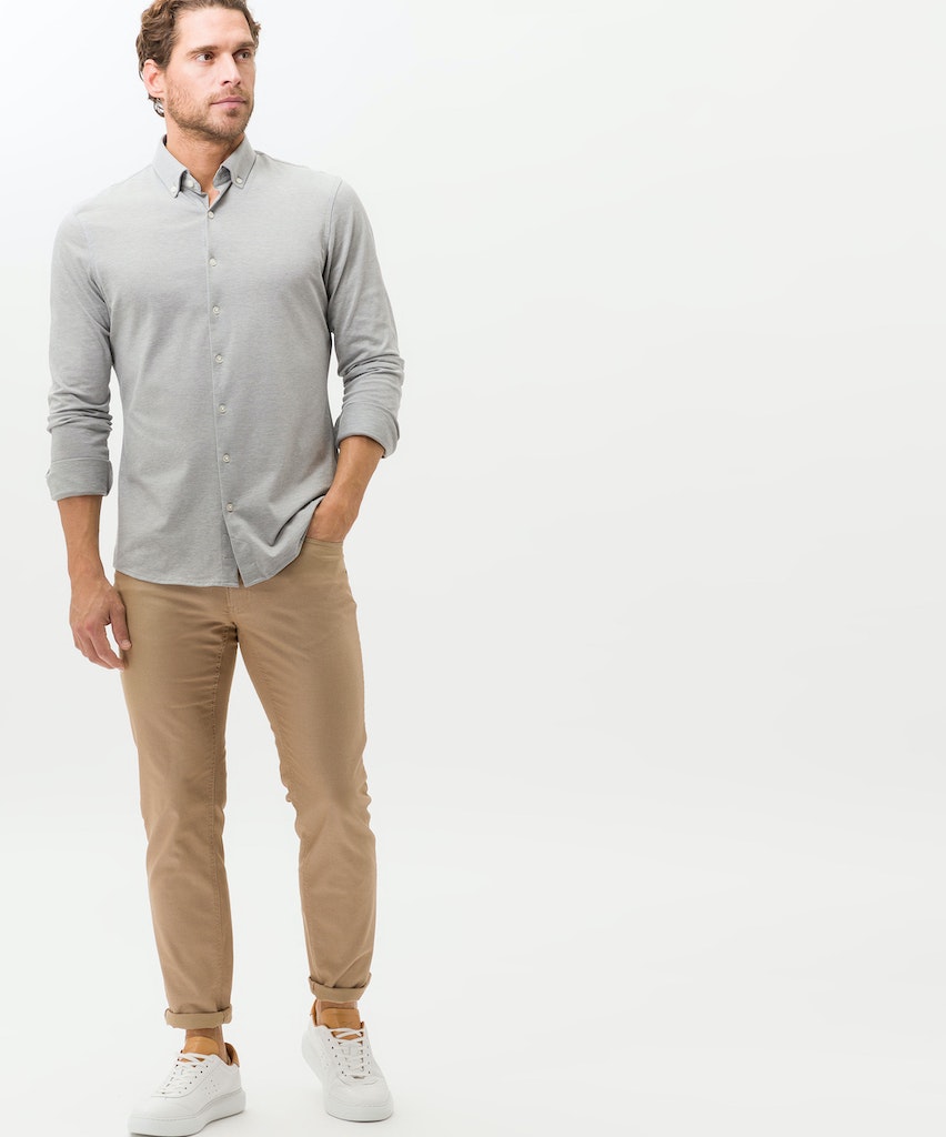 Ein Everyday-Piece für Herren ist der Style CHUCK. Modebewusst und smart kombinieren Sie bequeme Sneaker mit dieser Five-Pocket-Hose. Die Modern Fit Herrenhose ist modisch und vielseitig mit schlanker Passform und regulärer Leibhöhe. Eine ansprechende Optik erhält die Hose insbesondere durch das aufwendige Taschendesign. Zusätzlich ist sie mit Kunstlederbesatz und Ziernieten gestaltet. Selbstbewusst und spannend ist die Struktur, die mit ihrem effektvollen Warenbild das Material belebt. Der unempfindliche und hautfreundliche Baumwollmix bietet zudem bei dieser Five-Pocket-Hose ein sehr gutes Tragegefühl.<