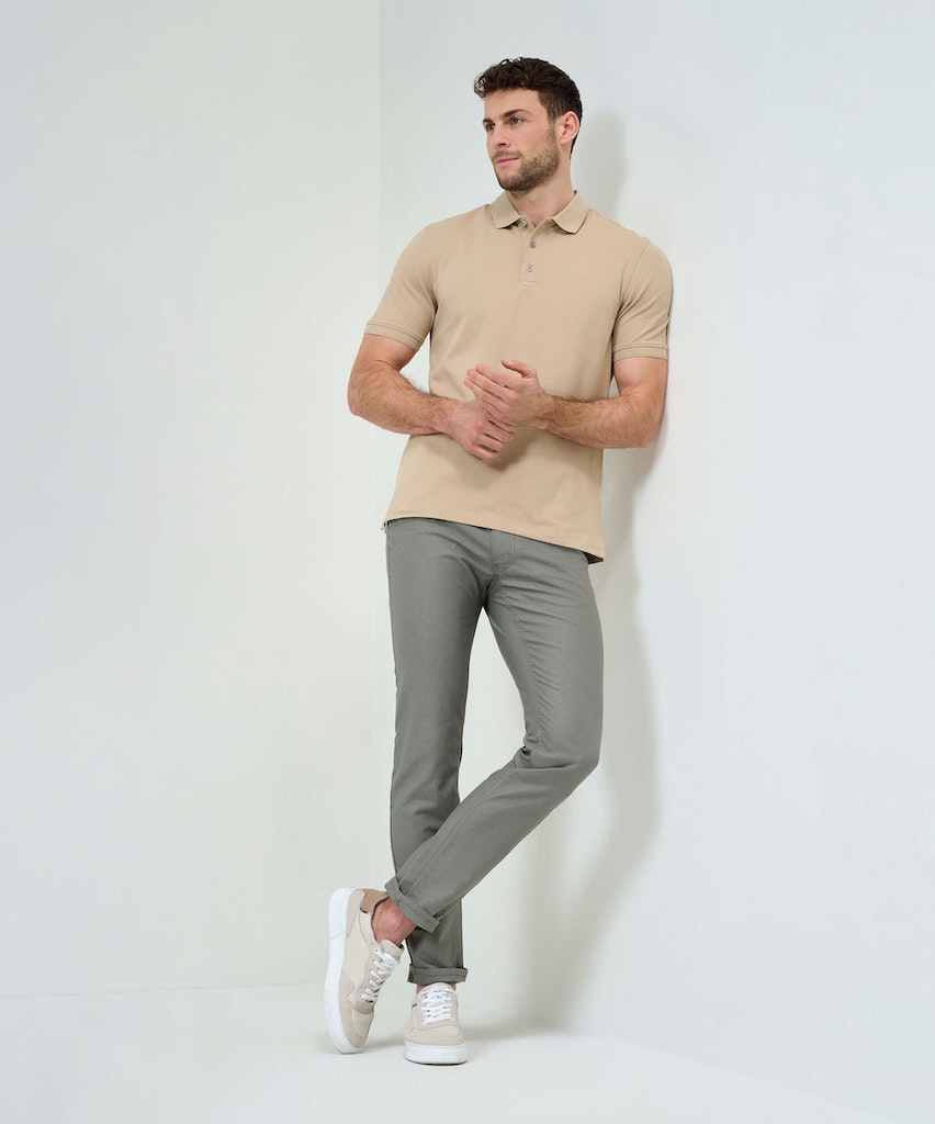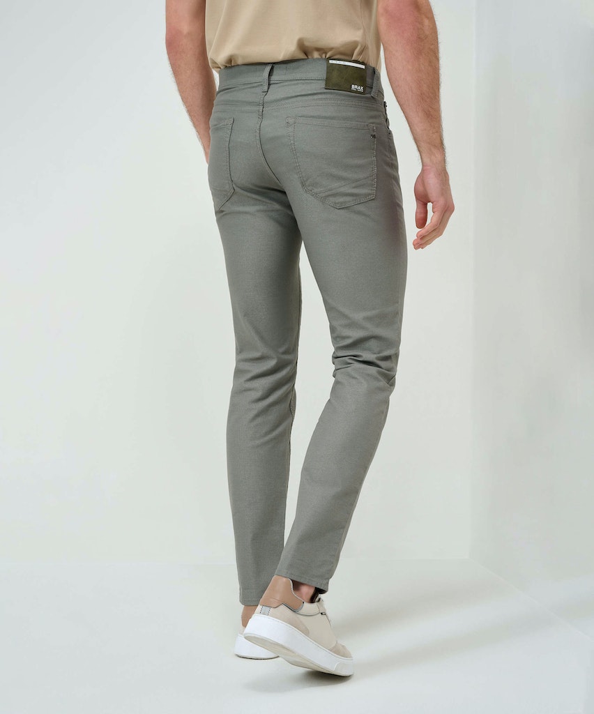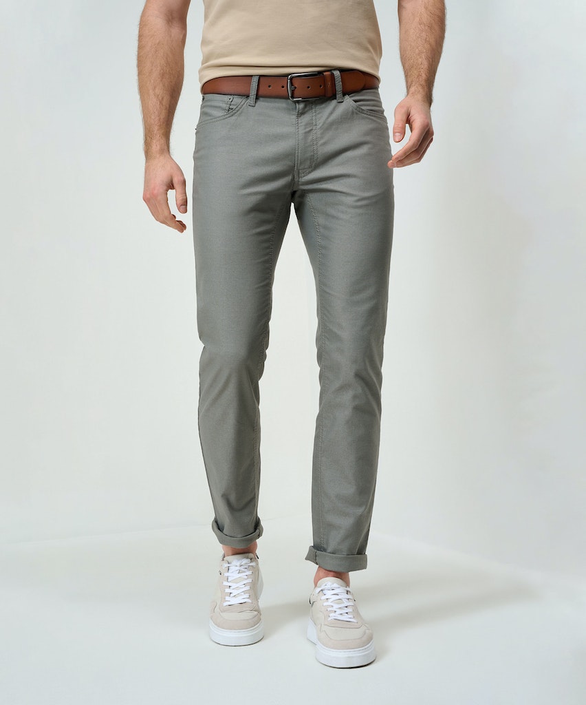 Der Style CHUCK ist ein Must Have für Herren. Modebewusst und smart kombinieren Sie bequeme Sneaker mit dieser Five-Pocket-Hose. Die Modern Fit Herrenhose ist modisch und vielseitig mit schlanker Passform und regulärer Leibhöhe. Eine typische Optik erhält die Hose insbesondere durch das aufwendige Taschendesign. Zusätzlich ist sie mit Ziernieten und Kunstlederbesatz gearbeitet. Movement without limits: Die extrem elastischen Hi-Flex-Fasern garantieren Ihnen durch High Stretch unendliche Bewegungsfreiheit - exclusive by BRAX. Selbstbewusst und spannend ist darüber hinaus die Struktur, die mit ihrem effektvollen Warenbild das Material belebt. Der nachhaltige, unempfindliche und hautsympathische Baumwollmix bietet außerdem bei dieser Five-Pocket-Hose ein einwandfreies Tragegefühl.Form: