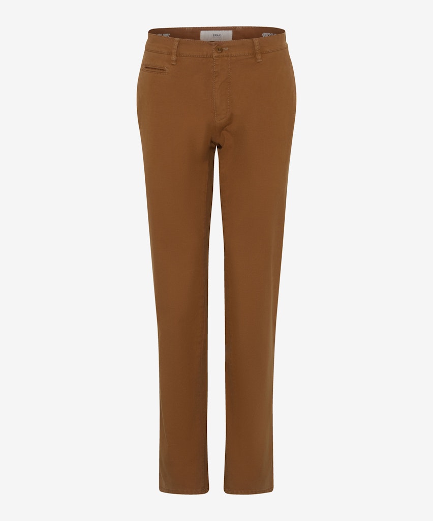 Der Style FABIO IN ist ein Trend-Piece für Herren. Smart mit Hemd oder modern mit Pullover - die Chino gefällt im klassischen und legeren Look. Die Modern Fit Herrenhose ist modisch und vielseitig mit schlanker Passform und regulärer Bundhöhe. Eine ansprechende Optik erhält die Hose insbesondere durch das aufwendige Taschendesign. Zusätzlich ist sie mit Kunstlederbesatz und Ziernieten gearbeitet. Movement without limits: Die extrem elastischen Hi-Flex-Fasern garantieren Ihnen durch High Stretch unendliche Bewegungsfreiheit - exclusive by BRAX. Selbstbewusst und spannend ist darüber hinaus die Struktur, die mit ihrem effektvollen Warenbild das Material belebt. Der nachhaltige, unempfindliche und hautfreundliche Baumwollmix bietet außerdem bei dieser Chino ein erstklassiges Tragegefühl.Form: