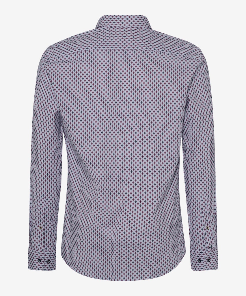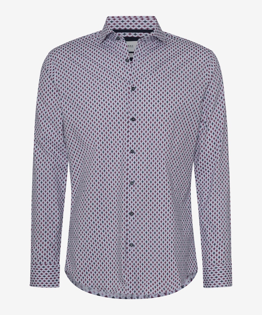 Definiert moderne Eleganz neu: das Herrenhemd im Style HAROLD. Ausgestattet mit einem markanten Haifisch-Kragen und verziert mit einem dezenten Minimalprint, strahlt es einen smarten Look aus. Die leicht taillierte Silhouette des Hemdes unterstreicht mit einer perfekte Passform die zeitgemäße Optik des Hemdes. Bei der Materialauswahl setzt das Langarm-Hemd auf die exklusive Hi-FLEX-Qualität von BRAX. Diese hochwertige Popeline, ein geschmeidiger Mix aus Baumwolle und Elasthan, steht für angenehmen Tragekomfort und gewährleistet eine außergewöhnliche Bewegungsfreiheit.Form: