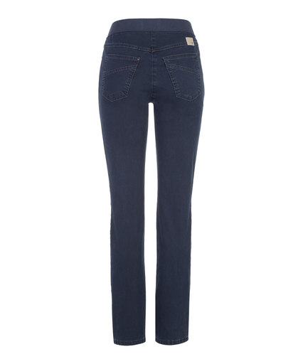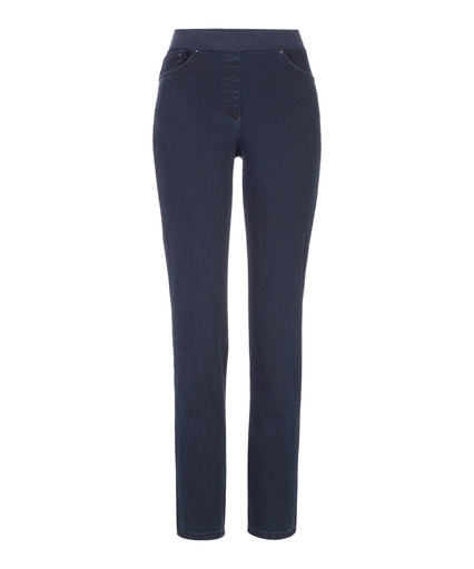 Wohlfühlen in Jeans. Mit diesem extrem elastischen Denim-Oberstoff schmiegt sich die "Super Dynamic"-Hose wie eine zweite Haut an. Damit garantiert diese Damenjeans eine wohlgeformte Silhouette und mehr Bewegungsfreiheit trotz schlanker Form. Für zusätzlichen Tragekomfort im Taillenbereich sorgt der tonige Rundum-Jerseybund mit innenliegendem Gummi. Aber auch die Modernität kommt bei dieser dieser gepflegten Damenjeans in einer Schlupfhosen-Variante nicht zu kurz. Der Denimstoff überzeugt mit einer authentischen Optik und verblüfft mit einer umfangreichen Farbpalette, die von klassischen Jeansfarben bis hin zu pudrigen Pastelltönen reicht. So setzen Sie gekonnt Akzente in Ihrem Outfit - bei höchstem Tragekomfort. Probieren Sie eine Hosengröße kleiner und lassen sich von der perfekten Passform überraschen.Form: