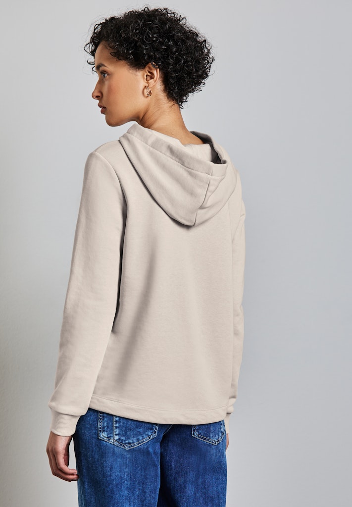 Der Sweat Hoodie von Street One für Damen ist ein sportlicher Klassiker, der mit seiner soften Qualität und gemütlicher Passform überzeugt. Die Kapuze und der Tunnelzug am Saum sorgen für einen lässigen Look, während der weiche Baumwollmix hohen Komfort bietet. Perfekt für entspannte Freizeit-Outfits. Sweatshirt Kapuze Langarm mit Bündchen Tunnelzug am Saum Softer Baumwollmix Material: 65% Baumwolle, 35% Polyester