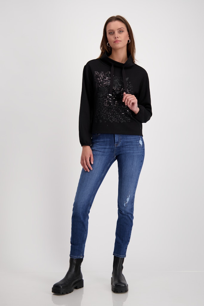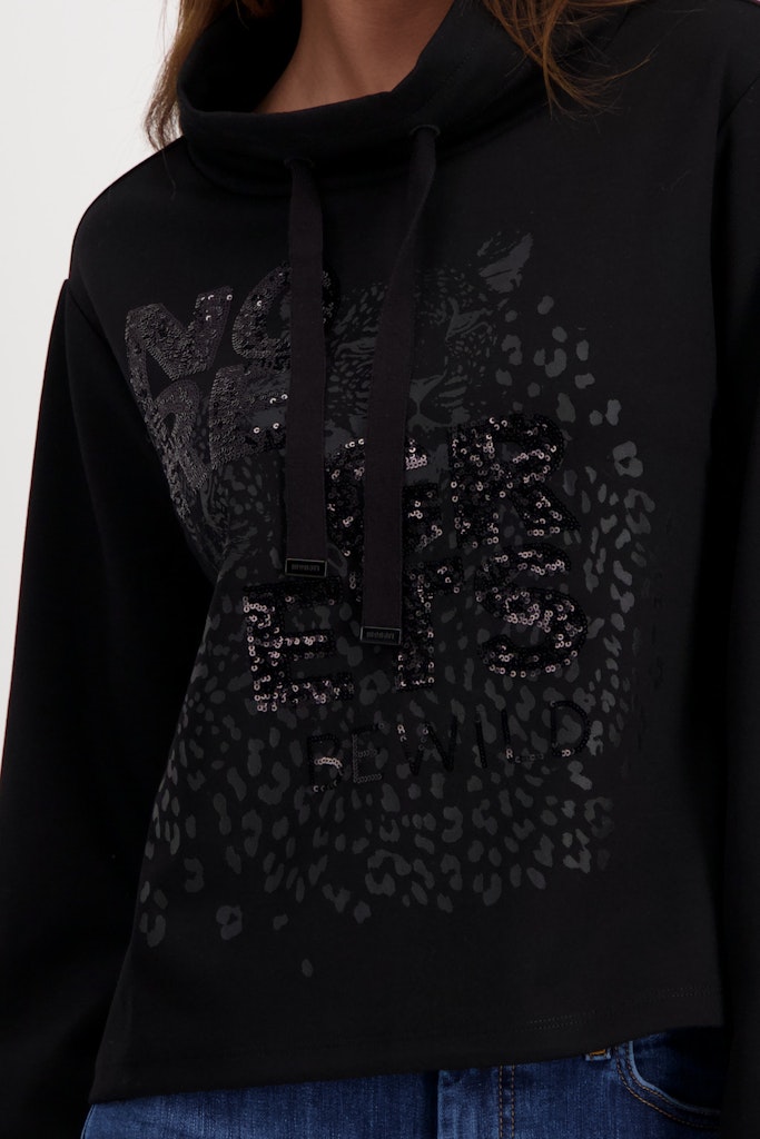 Dank softer Haptik und der elastischen Qualität fühlt sich das Sweatshirt angenehm und hautfreundlich an. Ein toniges Leopardenmuster und tonige Pailletten Schrift schmücken die Front.