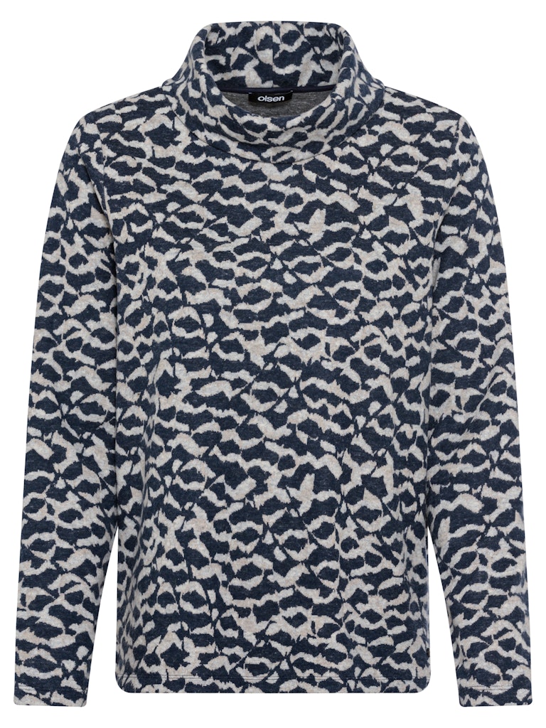 Dieses Jerseyshirt kombiniert Funktionalität und Design zu einem vielseitigen Kleidungsstück. Es überzeugt durch seinen doppelten Stehkragen, der für zusätzlichen Stil und Komfort sorgt. Die langen Ärmel und der gerade Schnitt gewährleisten einen klassischen, unkomplizierten Look, der sich mühelos in verschiedene Outfits integrieren lässt. Der auffällige Allover-Print setzt einen modischen Akzent und macht das Jerseyshirt zu einem Blickfang. Gefertigt aus einem hochwertigen Mix aus Polyester, Viskose und Baumwolle, vereint es Strapazierfähigkeit mit Weichheit und sorgt für ein angenehmes Tragegefühl den ganzen Tag über.