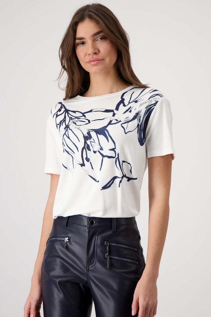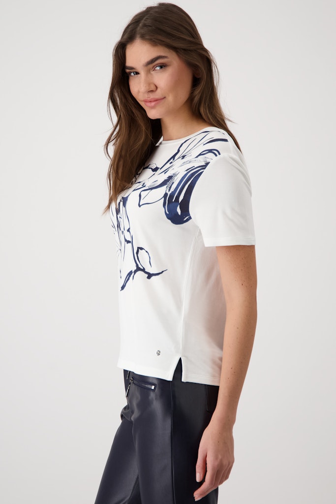 Das T-Shirt mit Blumen-Print ist aus einem fließenden Viskose-Modal-Mix gefertigt und mit funkelnden Strasssteinen verziert.