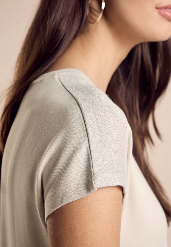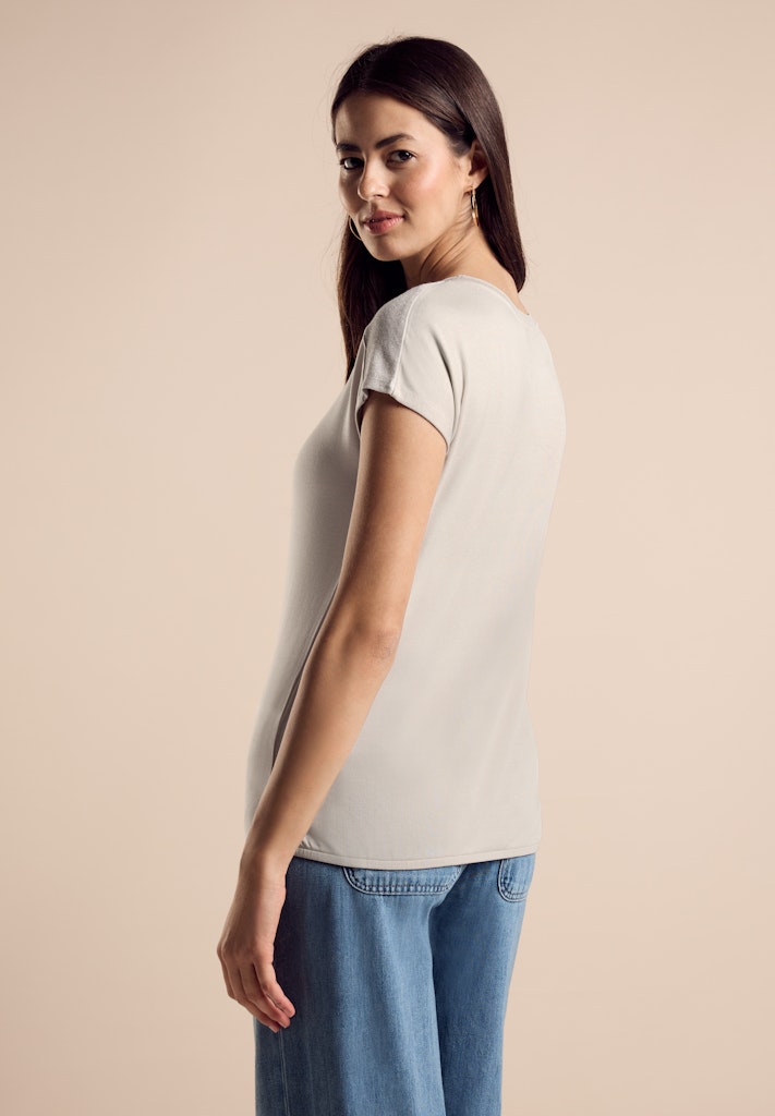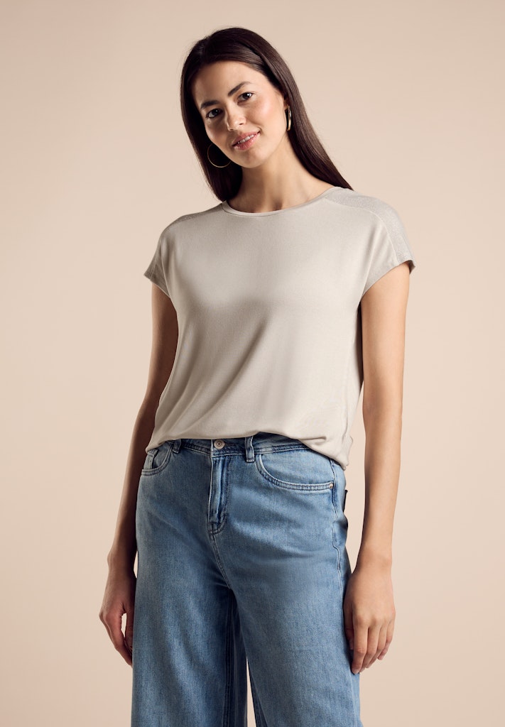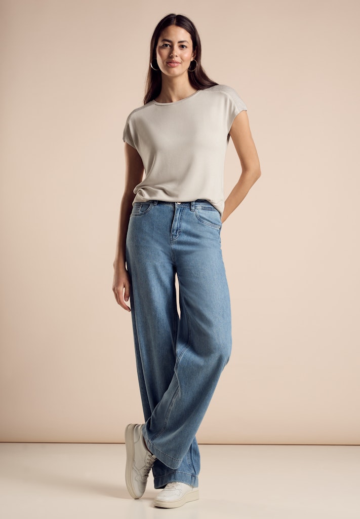 Das T-Shirt von Street One für Damen mit Glanz-Detail an der Schulter ist ein elegantes Basic. Der Rundhalsausschnitt und der Armansatz machen es vielseitig kombinierbar. Der Viskosemix mit Stretchanteil bietet angenehmen Tragekomfort. Leichtes Shirt Rundhalsausschnitt Armansatz Glanz-Detail an der Schulter Viskosemix mit Stretchanteil Material: 95% Viskose, 5% Elasthan