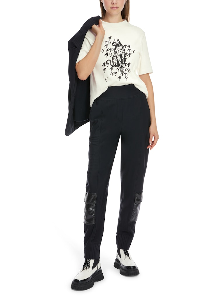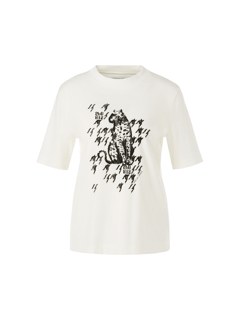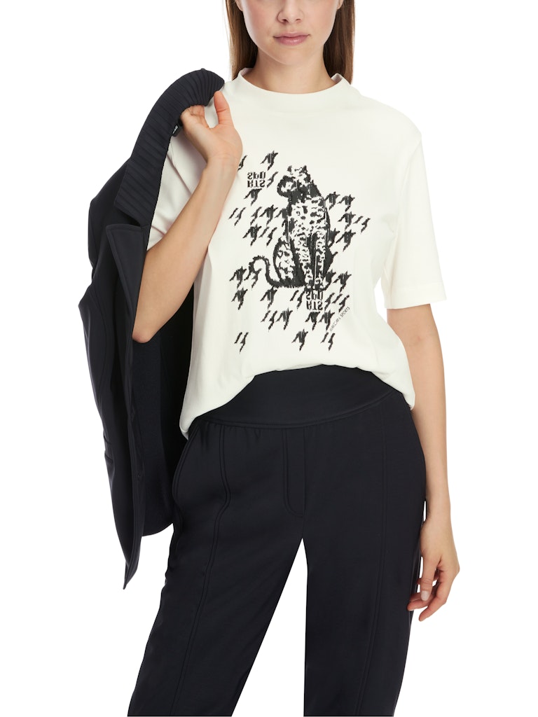 T-Shirt mit Leo-Print|Der mit platzierten Perlen bestickte Leo-Print im Vorderteil zieht bei diesem T-Shirt die Blicke an. Es hat eine leicht taillierte Silhouette mit Rundhalsausschnitt. Das weiche Baumwollmaterial besitzt einen kleinen Elasthananteil. Mit seinem dezenten Rippen besticht das Oberteil durch außergewöhnlichen Tragekomfort.|Taillierte Form|Dezente Rippen|Rundhals|Weicher Baumwoll-Jersey|Das Model ist 179 cm groß und trägt N3/38.