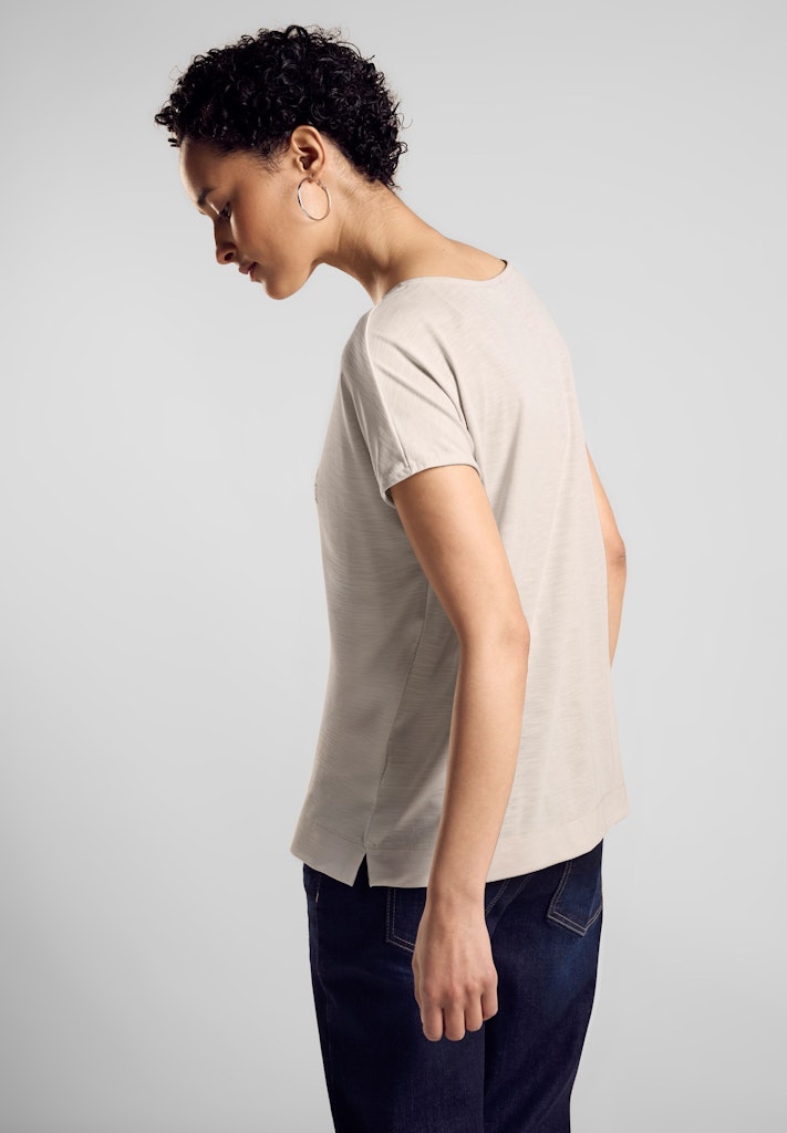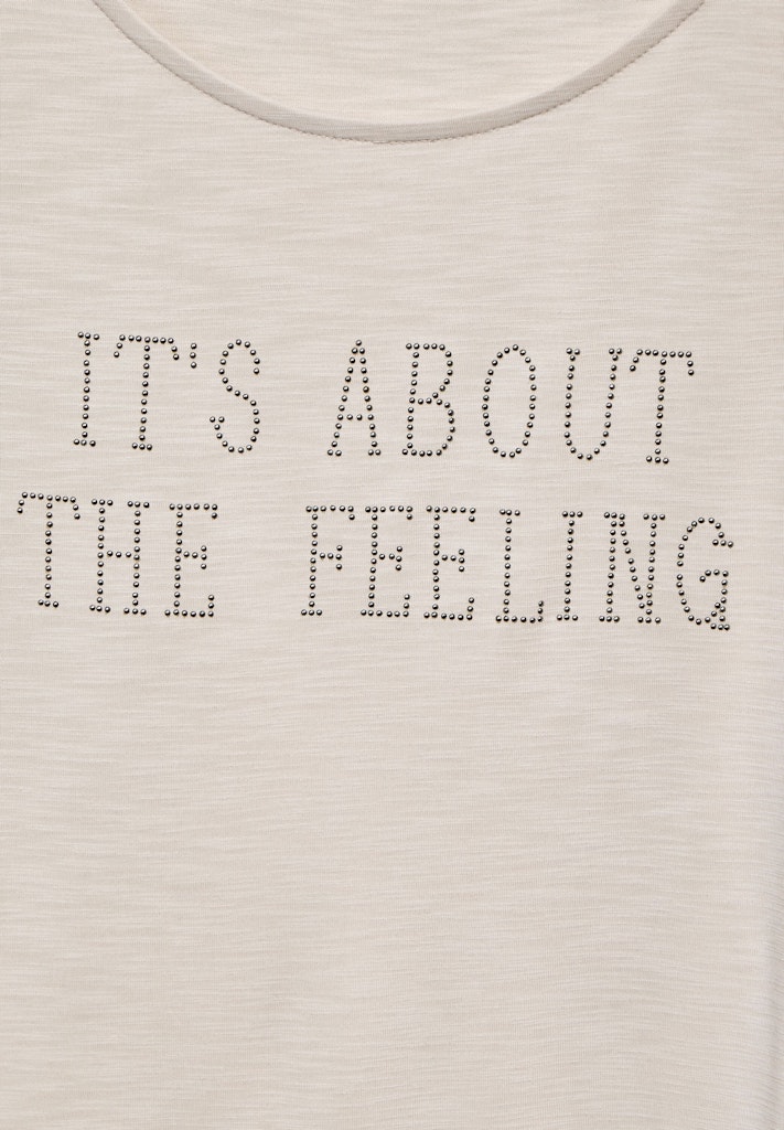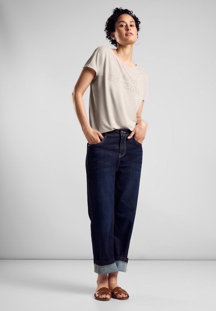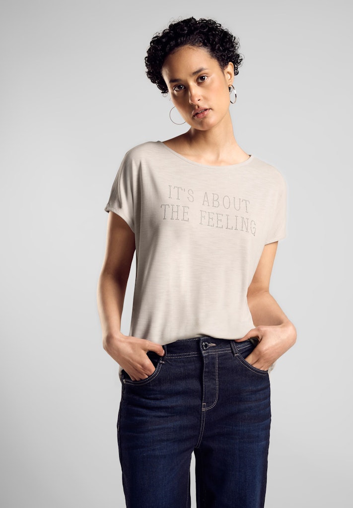 Dieses T-Shirt mit Schriftzug von Street One für Damen ist die ideale Ergänzung für deine Sommergarderobe. Das Shirt verfügt über einen Armansatz und einen Rundhalsausschnitt. Das Wording Detail und der angenehme Tragekomfort machen es zu deinem bequemen Begleiter für jeden Tag.