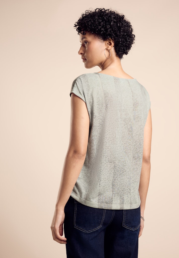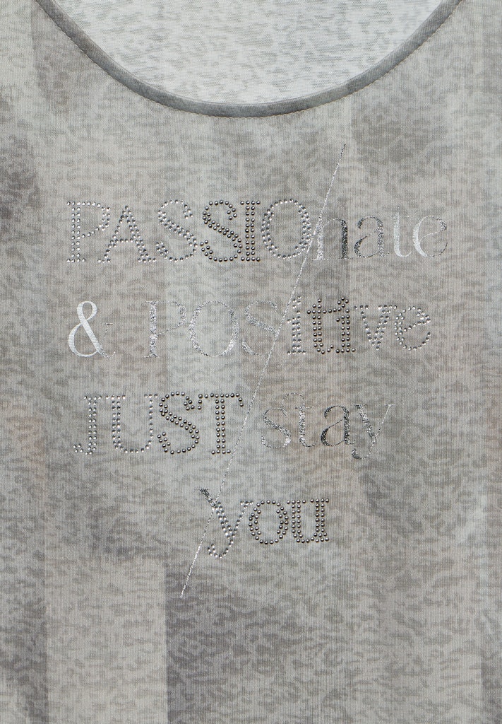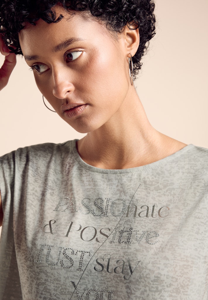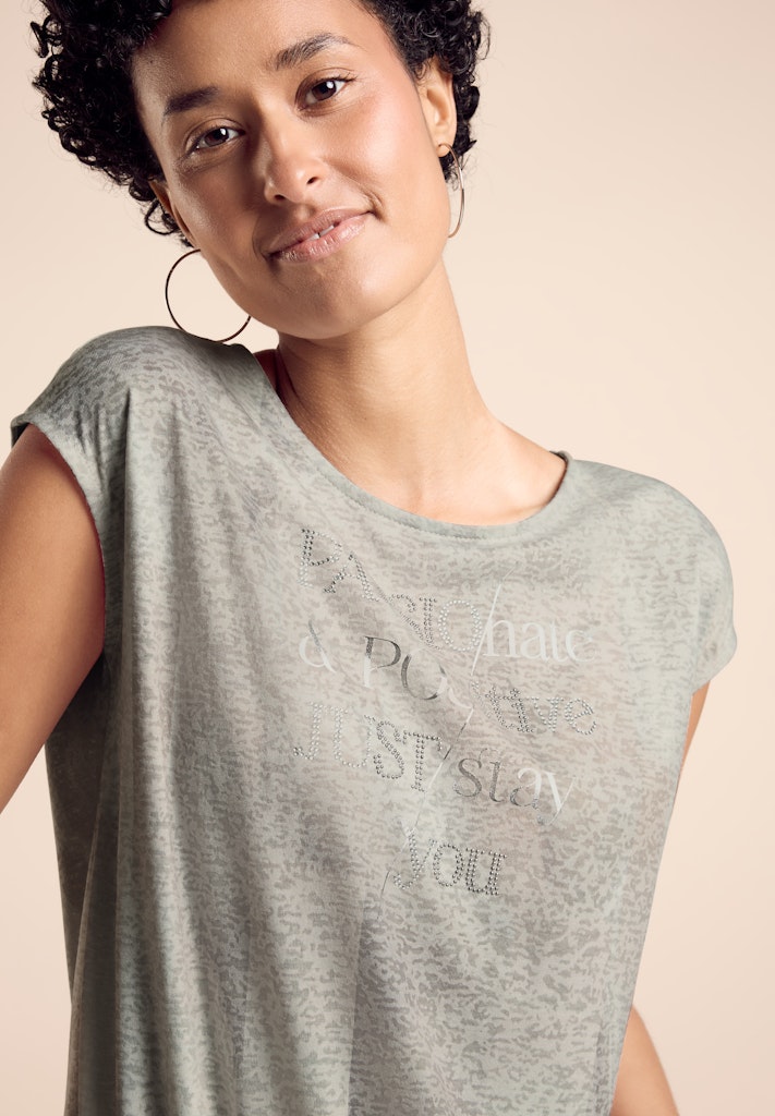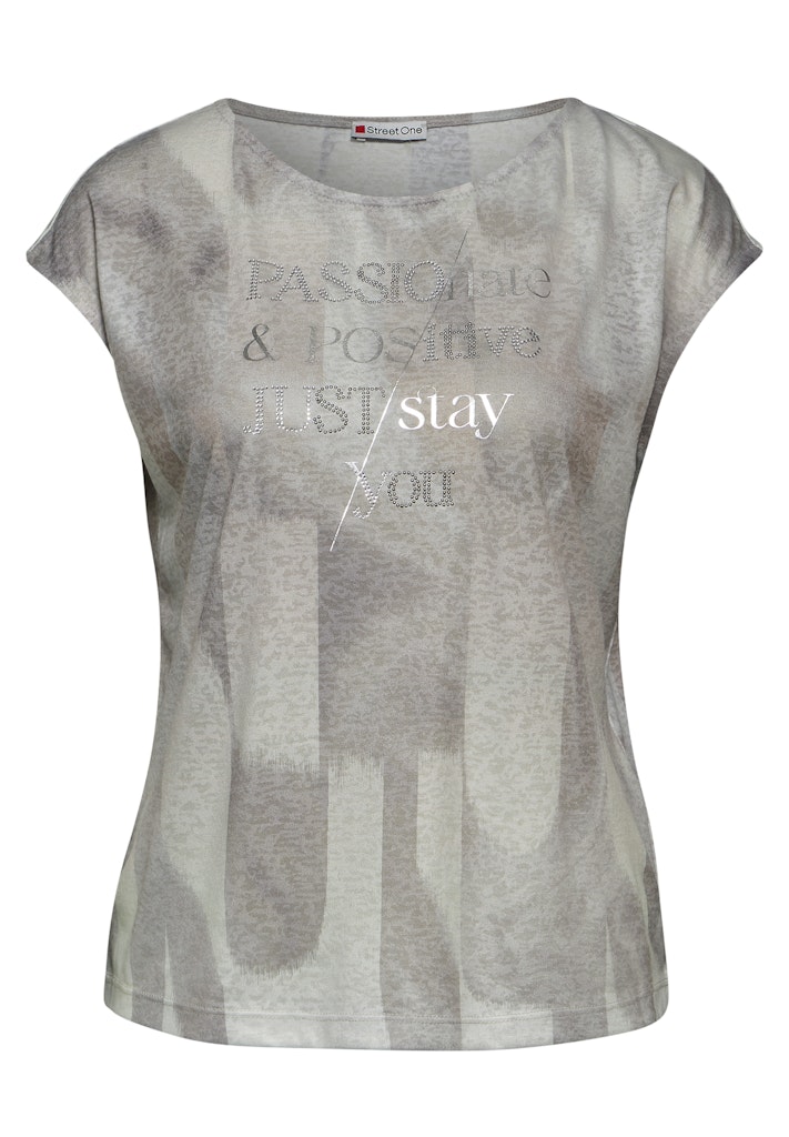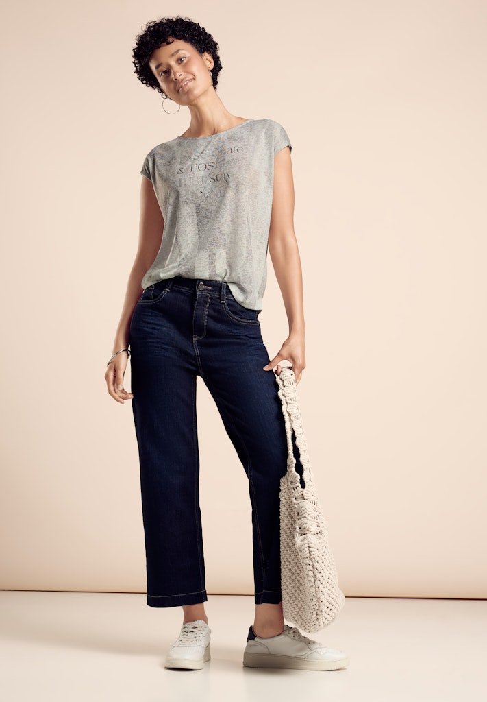 Das T-Shirt von Street One für Damen ist ein stilvolles Kurzarmshirt. Der Rundhalsausschnitt und der angenehme Materialmix bieten leichten und bequemen Tragekomfort. Das glänzende Wording macht es zu einem modischen Highlight. Kurzarmshirt Rundhalsausschnitt Glänzendes Wording Angenehmer Materialmix Leicht und bequem Material: 50% Baumwolle, 50% Modal