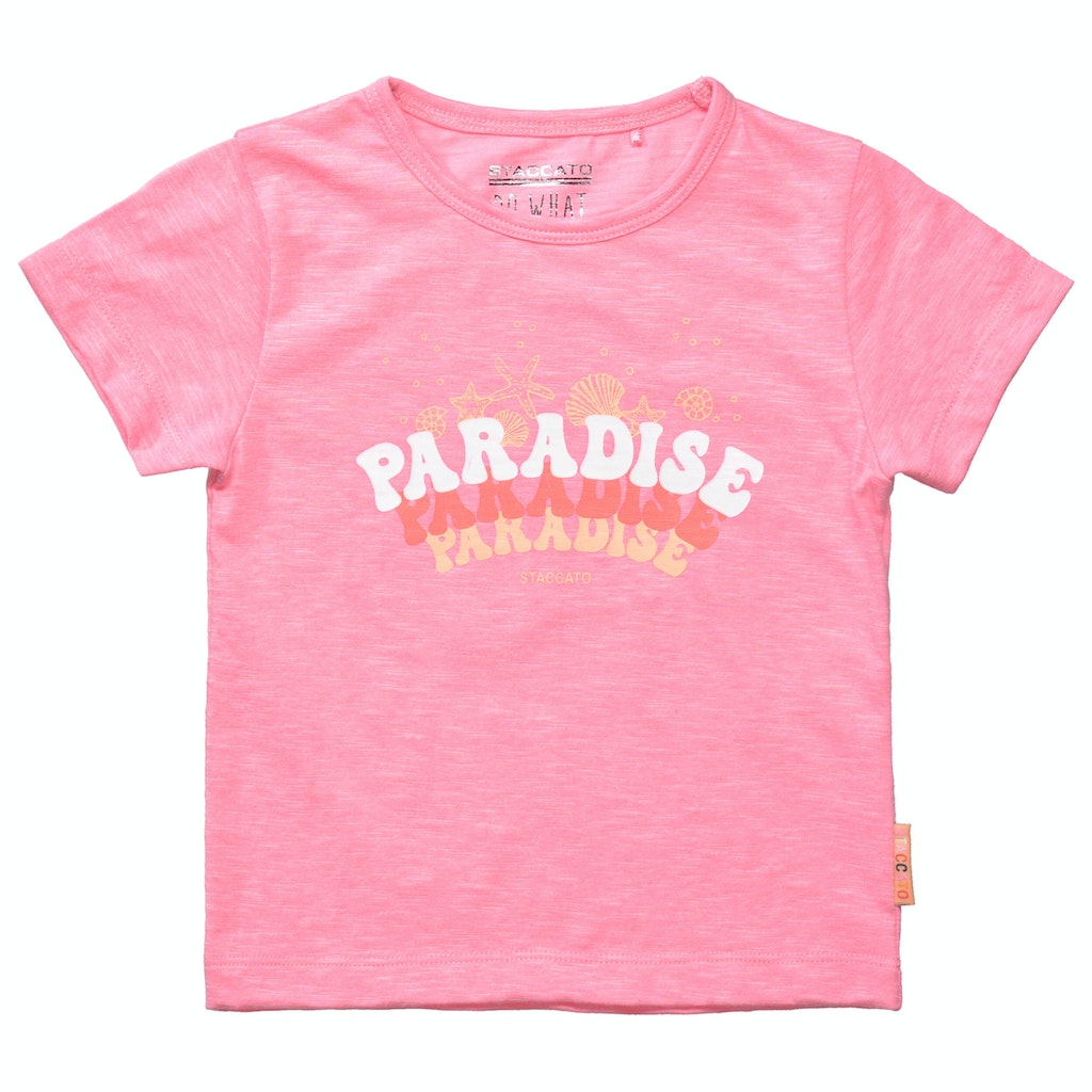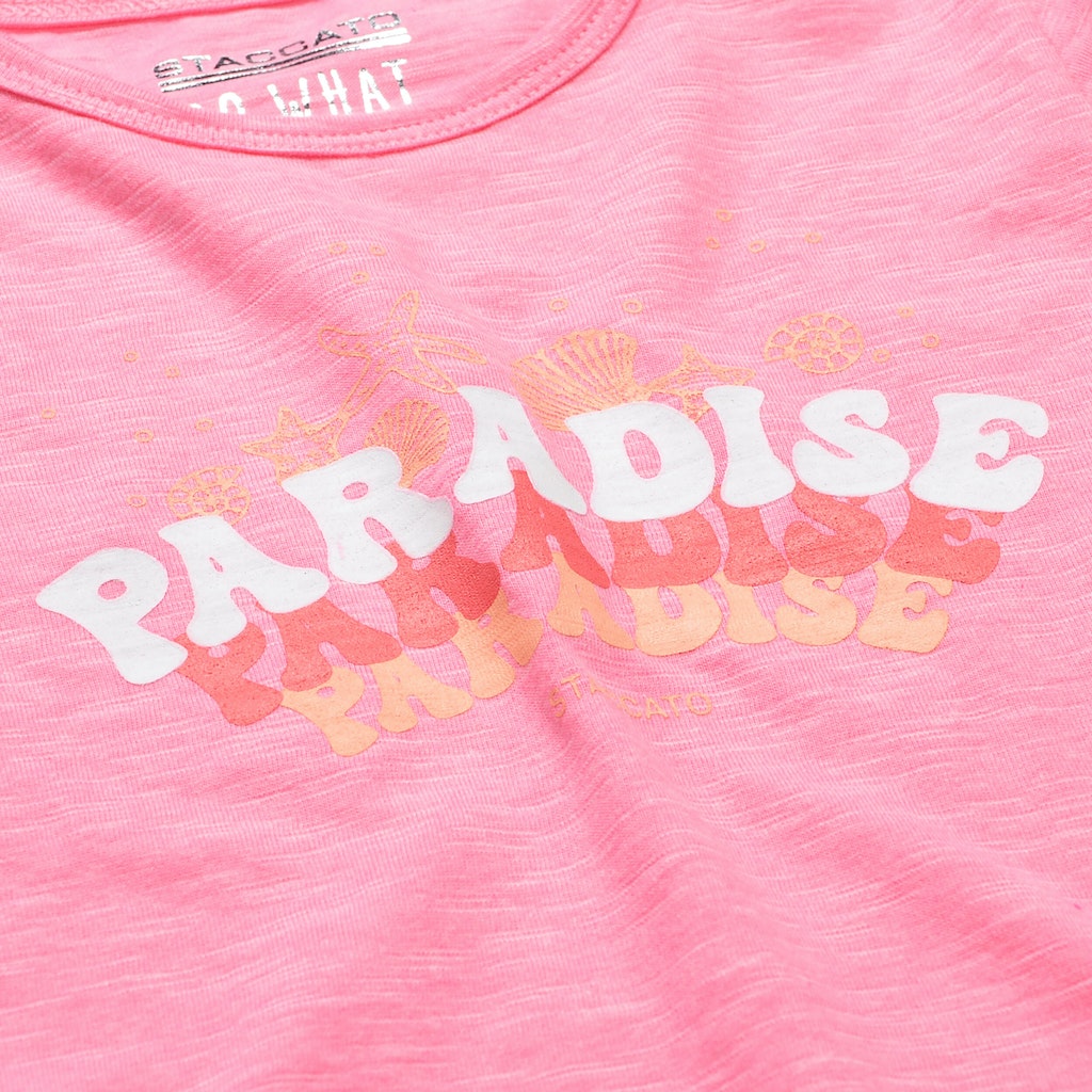 Darf in keiner Sommer-Garderobe fehlen! Dieses schöne T-Shirt von STACCATO mit buntem Wording-Print auf der Vorderseite wird Deine Kleine lieben.
