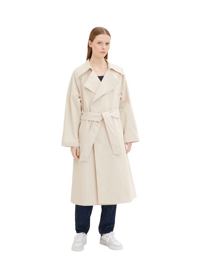 TOM TAILOR DENIM Langer Trenchcoat, creme TIE1