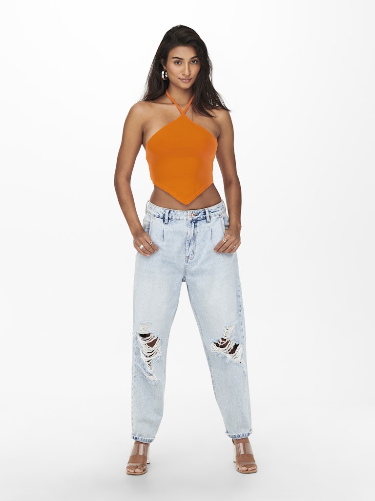 Verändere dein Alltagsoutfit in Sekundenschnelle, indem du mit einem femininen Oberteil einen weichen und schicken Akzent setzt. - Produkttyp : Top - Hals : Neckholder - Ärmel : Ohne Ärmel - Verschluss : Bindeverschluss - Länge/Größe : Verkürzt - Passform : Normal geschnitten