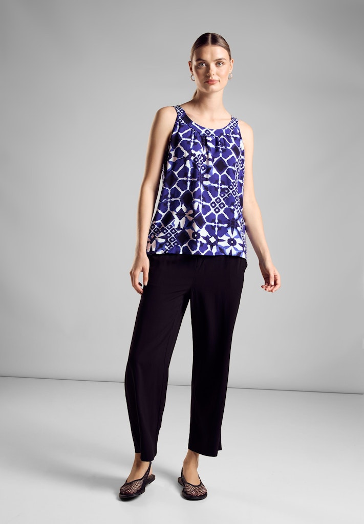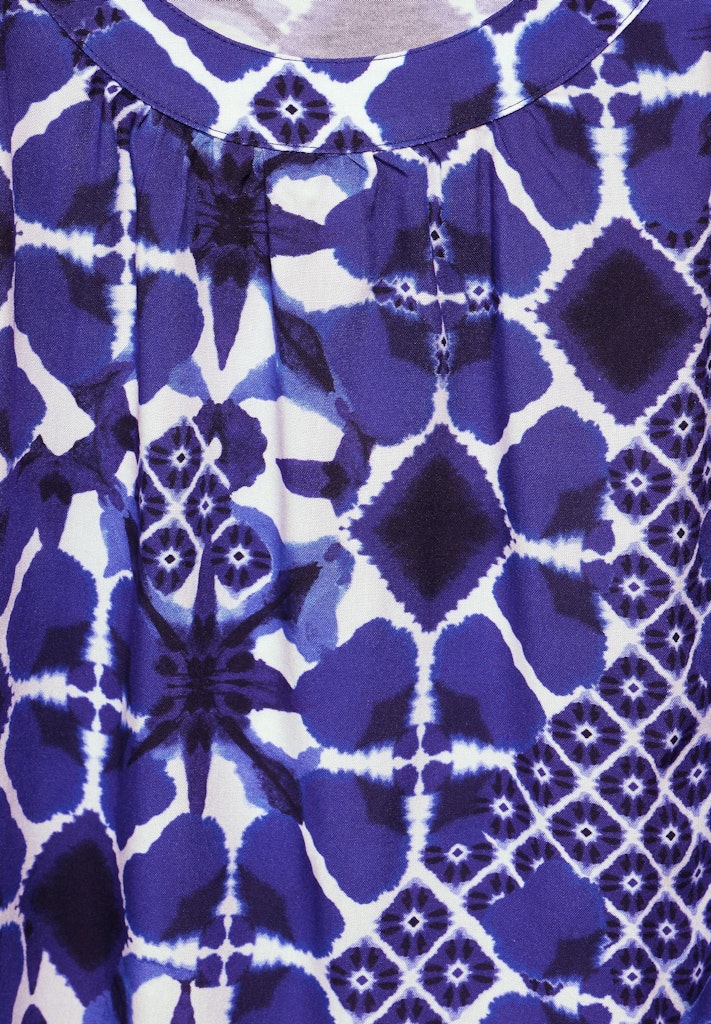 Das Top mit Print von Street One für Damen ist ein luftiges Sommertop mit einem klassischen Rundhalsausschnitt und einer feinen Raffung am Ausschnitt. Die Kombination aus softer Front und Shirtrücken bietet einen angenehmen Tragekomfort. Perfekt für warme Tage, verleiht dieses Materialmix Top deinem Look eine verspielte Note.