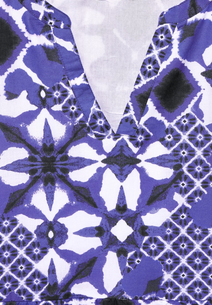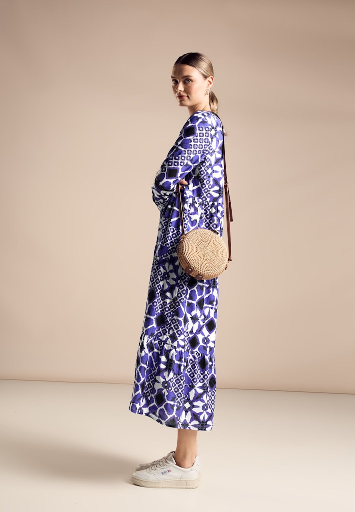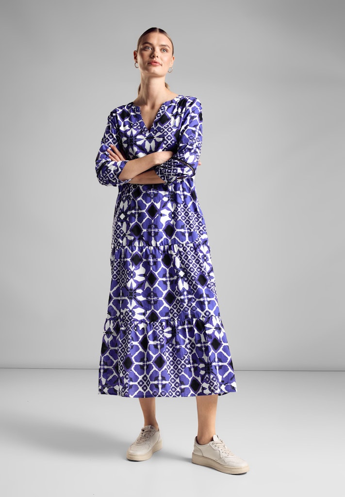 Das Tunika Kleid mit Print von Street One für Damen ist ein bezauberndes Midikleid aus Baumwolle, das deinem Look einen Hauch von Leichtigkeit verleiht. Mit seinem geschlitzten Rundhals und den 3/4 Ärmeln mit Bündchen und Knopfdetails bietet es eine charmante Note. Die luftigen Stickerei-Elemente verleihen dem Kleid eine verspielte Ausstrahlung, während der dünne Viskose-Unterstoff für ein angenehmes Tragegefühl sorgt.