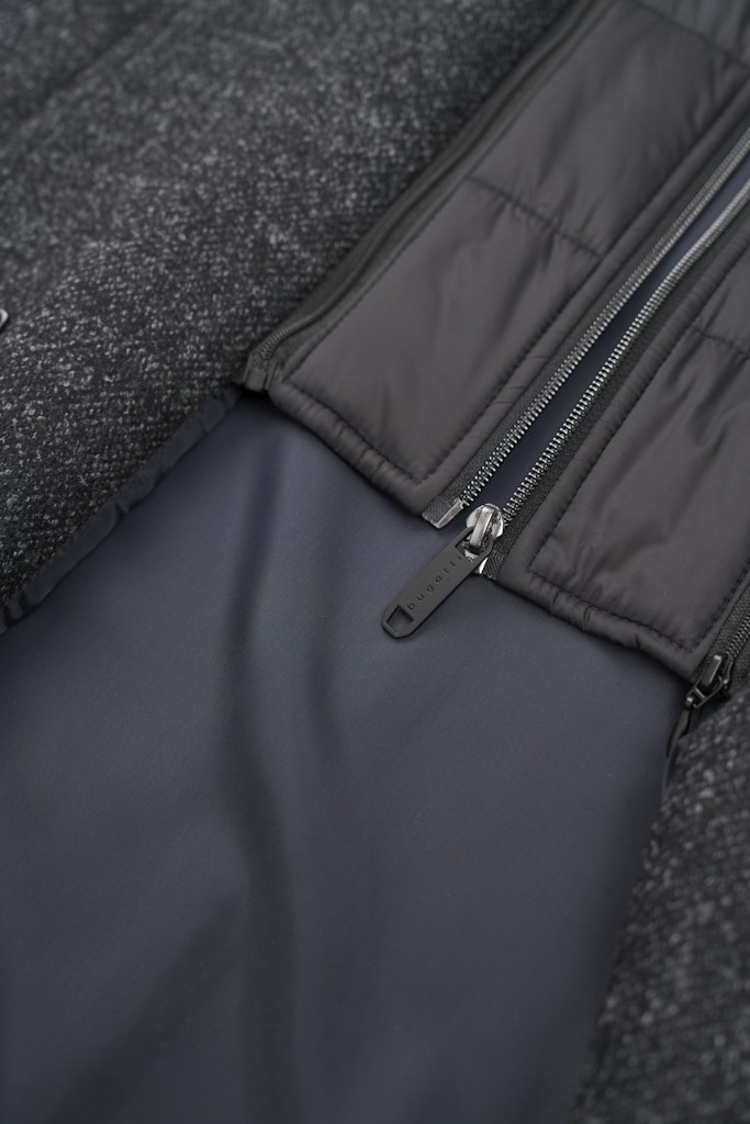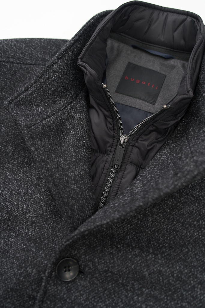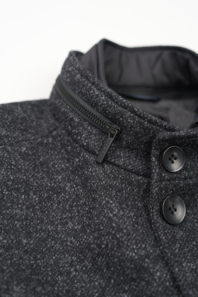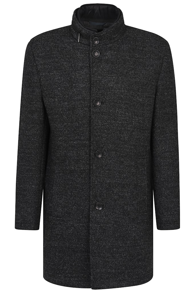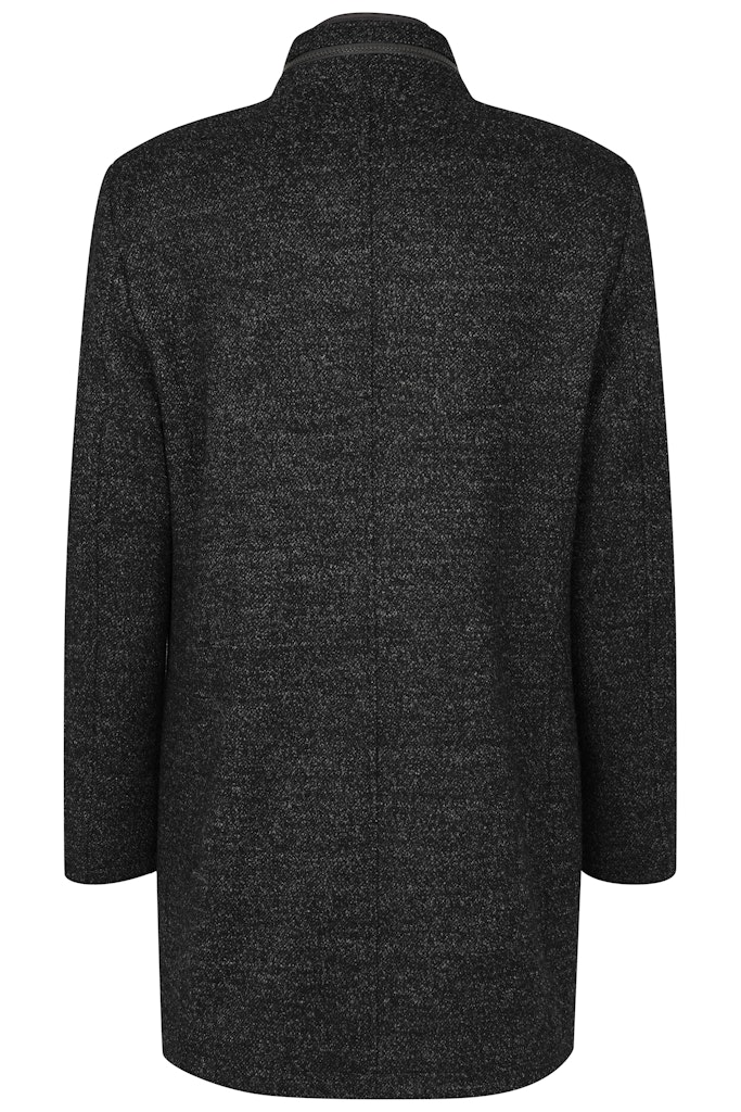 Klassischer Stehkragenmantel mit geraden eingeschobenen Leistentaschen. Mitten im Kragen ist ein Reißverschluss. Innen ist der Mantel komplett gefüttert und setzt farbliche Akzente durch die Paspeltaschen und das Ärmelfutter. Der Jersey Artikel mit stretch Funktion überzeugt mit seiner feinen Mélange-Dessinierung.