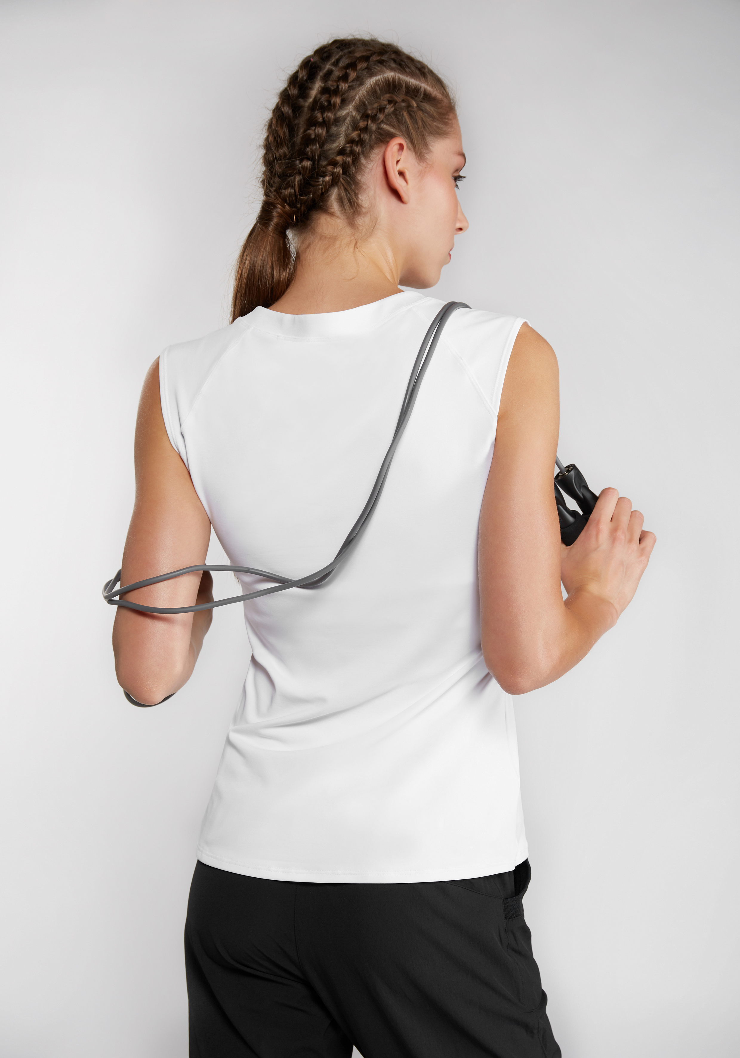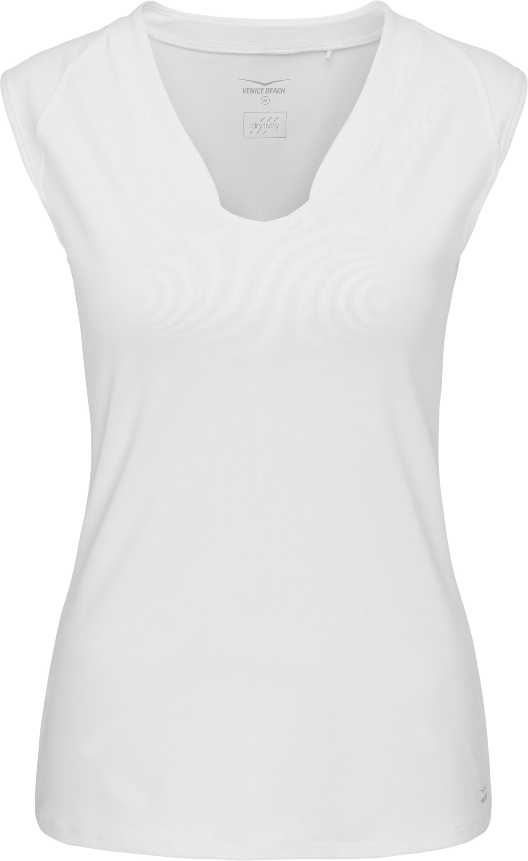 T-Shirt ELEAM für Damen mit weiter Schnittform und V-Ausschnitt: Funktionalität und Komfort für optimale Performance! Bequemer Schnitt, ideale Passform und viel Bewegungsfreiheit: All das zeichnet das T-Shirt ELEAM mit weiter Schnittform und V-Ausschnitt von VENICE BEACH aus. Ob cozy auf der Couch, beim schweißtreibenden Fitness-Training oder beim Brunch mit Ihrer besten Freundin. Als multifunktionelle Activewear überzeugt das T-Shirt für Damen auf ganzer Linie. Das hochwertige Material fühlt sich hervorragend weich auf der Haut an. Für ein Training ohne Grenzen transportiert es beim Sport die Feuchtigkeit vom Körper weg und hält bei kühleren Temperaturen angenehm warm. Das T-Shirt ELEAM liefert optimale Performance sowie Dynamik und ist somit die perfekte Wahl für jede sportliche Herausforderung. Das T-Shirt für Damen vereint nicht nur Funktionalität und Komfort, auch der Look ist modern. Inspiriert vom Flair des legendären Strandes in Los Angeles ist das Shirt beim Training und im Alltag sowie in der Freizeit ein modisches Highlight.