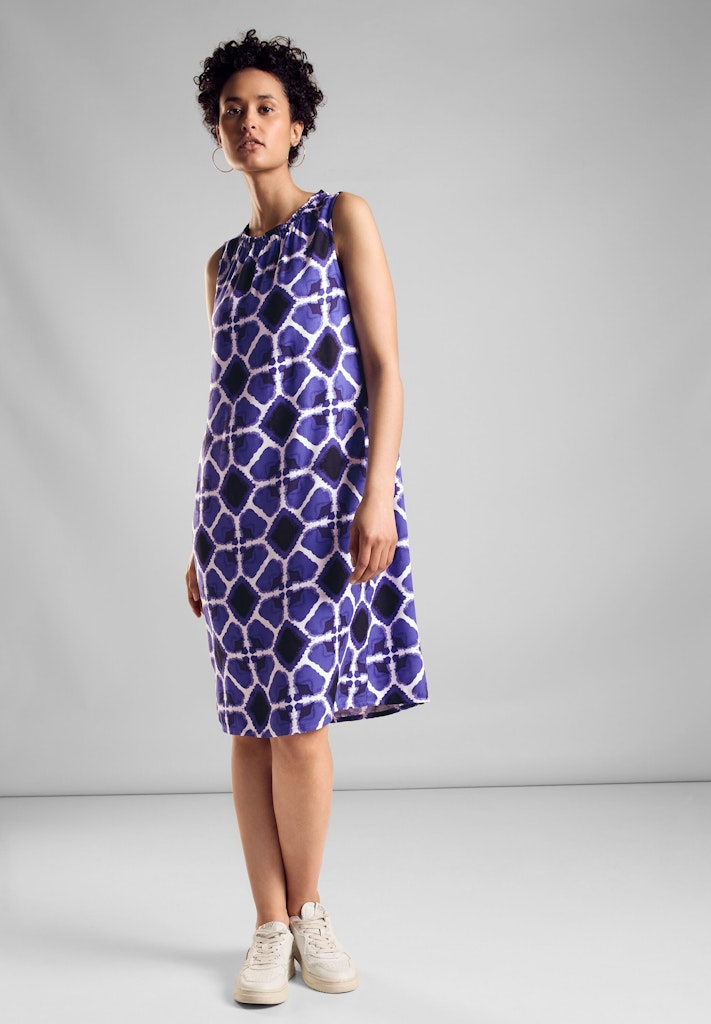 Das ärmellose Print Kleid von Street One für Damen ist ein zeitloses Sommerstück, das mit seinem verspielten Design besticht. Der geraffte Rundhals und der Schlitz mit Knopf im Nacken verleihen ihm eine elegante Note. Hergestellt aus softer Viskose-Qualität bietet es nicht nur einen modischen Look, sondern auch höchsten Tragekomfort für sonnige Tage.