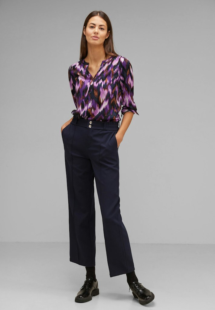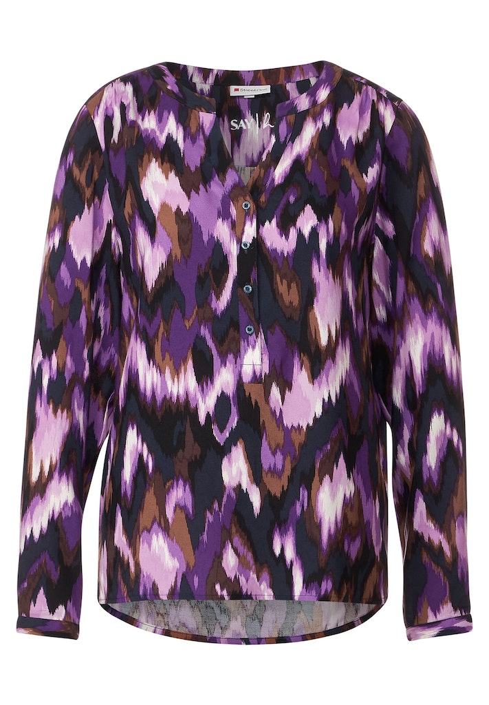 Komfortabel & schick! Die Damen Viskosebluse im Style Bamika von Street One besticht mit ihrem geschlitzten Rundhalsausschnitt und der halben Knopfleiste. Egal, ob in der Freizeit oder im Büro, mit ihr bist du immer gut gekleidet. Die hochwertige Viskose-Qualität sorgt für angenehmen Tragekomfort und das schlichte Design verleiht deinem Outfit eine zeitlose Eleganz.
