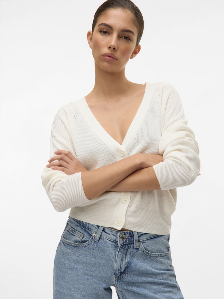Eine zusätzliche Schicht, die deinen Look mühelos aufpeppt? Dieser leichte Cardigan ist perfekt zum Unter- und Überziehen, überzeugt aber auch allein. Style ihn im Alltag vielseitig mit einer Jeans oder trag dazu einen Rock und Stiefel, wenn du Lust auf ein schickes Outfit hast. - Produkttyp : Strickjacke - Hals : V-Ausschnitt - Ärmel : Langarm - Ärmel : Tief angesetzte Schulter - Verschluss : Knopfleiste - Passform : Normal geschnitten