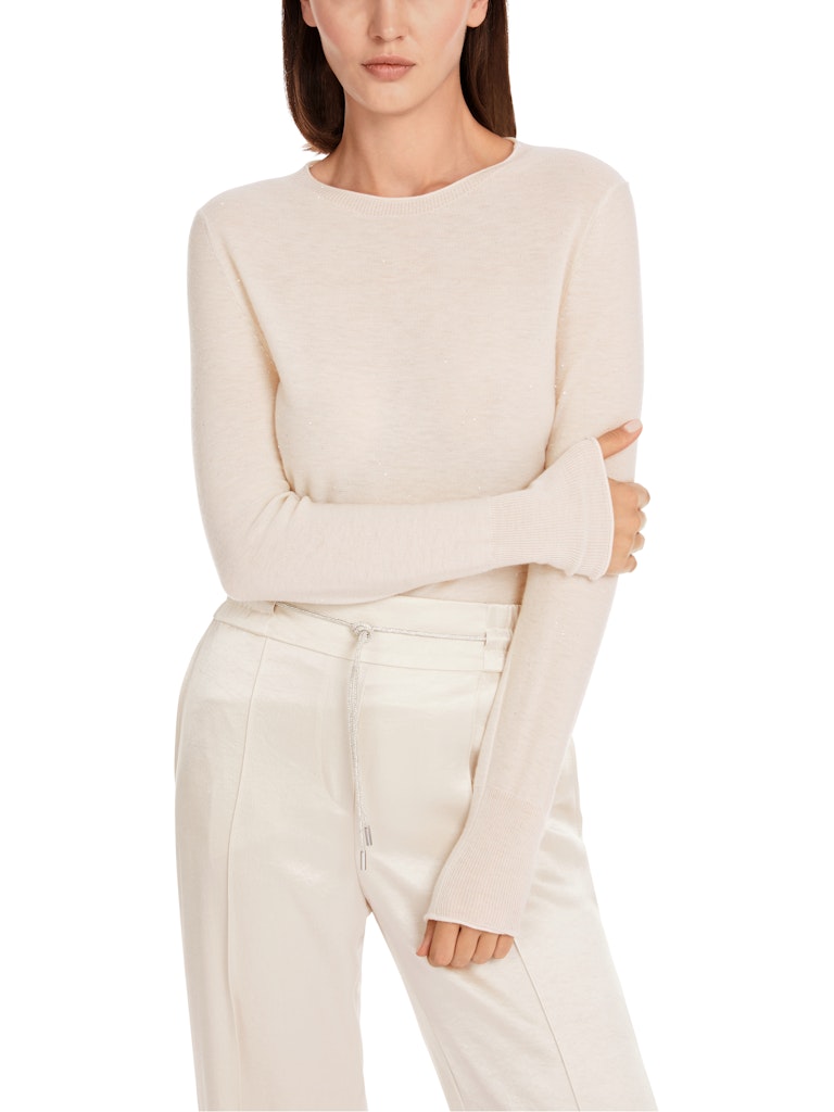 Wollpullover mit Rundhals|Dieser Pullover besticht mit seinem zarten, leicht durchscheinenden Material. Die feine Wolle ist mit kleinen Pailletten verziert. Der Pullover ist figurnah geschnitten und hat lange Ärmel. Ideales Basic für ein aktuelles Noblesse-Styling.|Figurnaher Schnitt|Mit kleinen Pailletten|Leicht durchscheinend|Zartes Material|Das Model ist 179 cm groß und trägt N3/38.