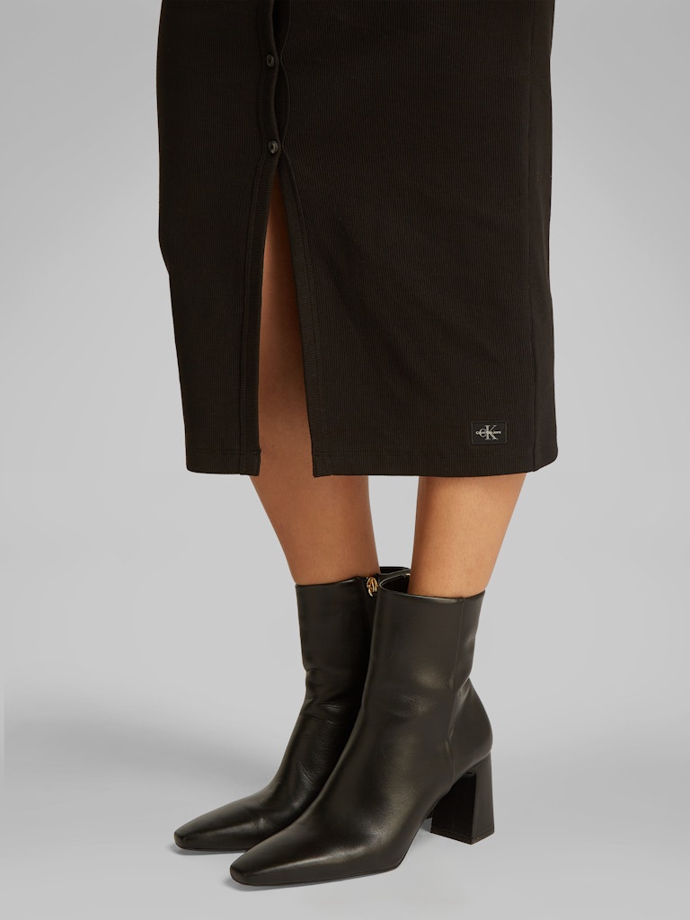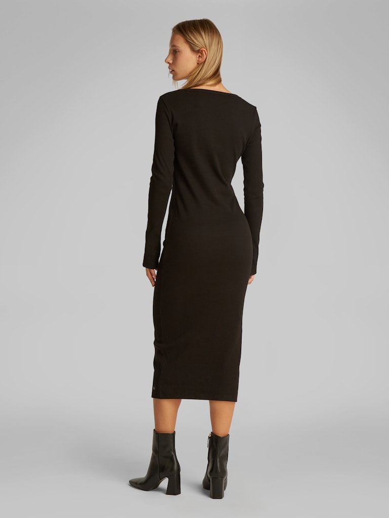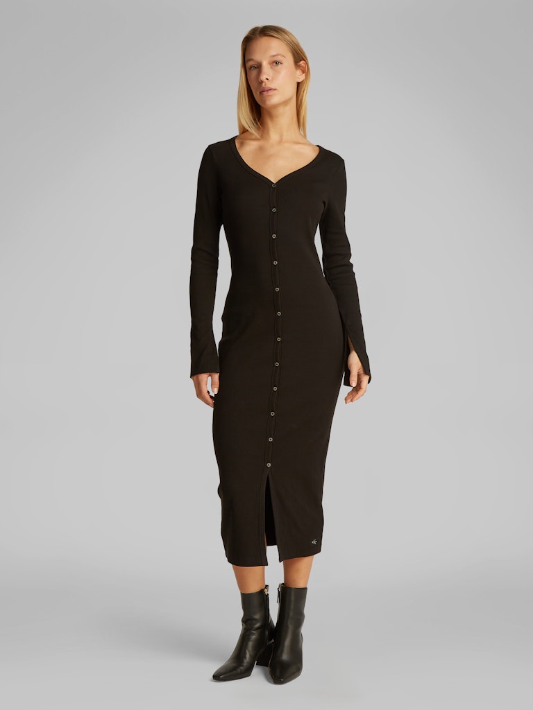 WOVEN LABEL LS RIB DRESS