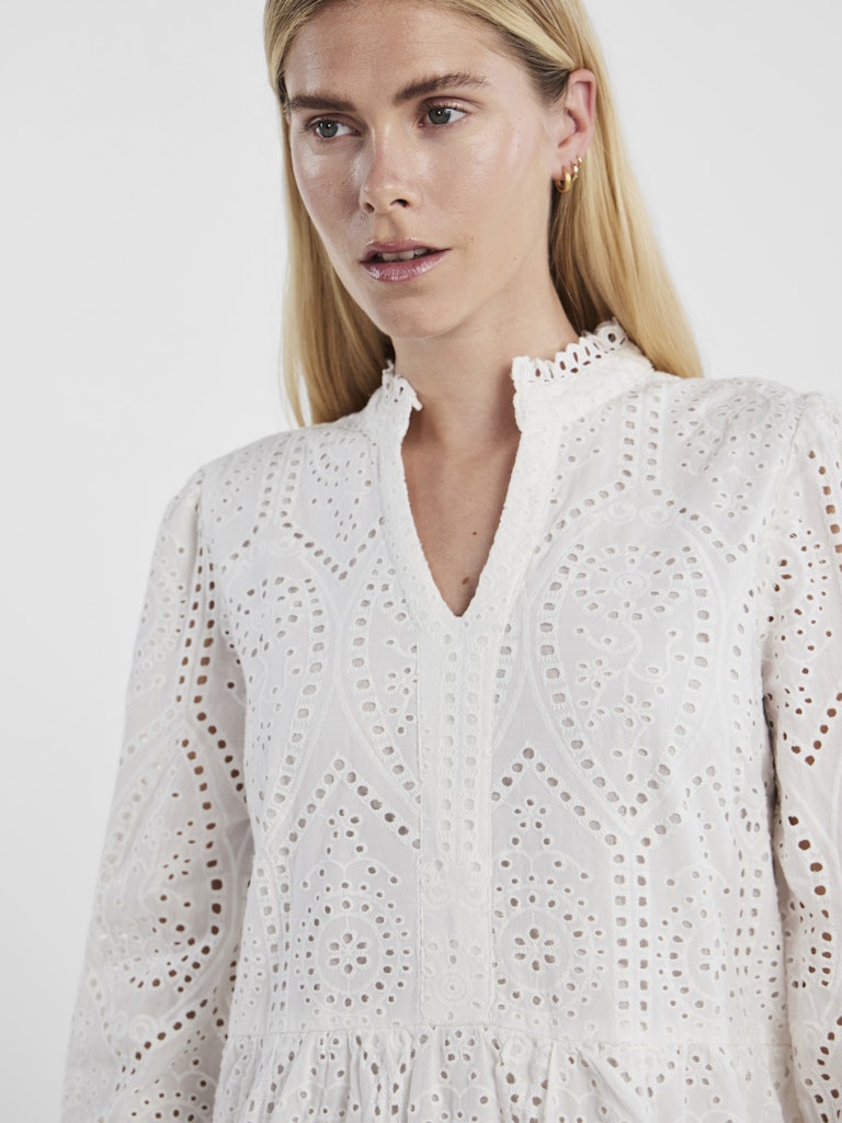 - Mandarinkragen mit Rüschen- V-Ausschnitt- Ballonärmel- Anliegende Ärmelbündchen mit Rüschen- Rock im Stufen-Look- Saum in Zickzack-Form- Lochstickerei-Detail- Relaxed FitMIT BIO-BAUMWOLLEDieses Produkt enthält Bio-Baumwolle. Bio-Baumwolle wird ohne schädliche Chemikalien angebaut. Der Anbau von Bio-Baumwolle schont die natürlichen Ressourcen und schützt die Bauern.