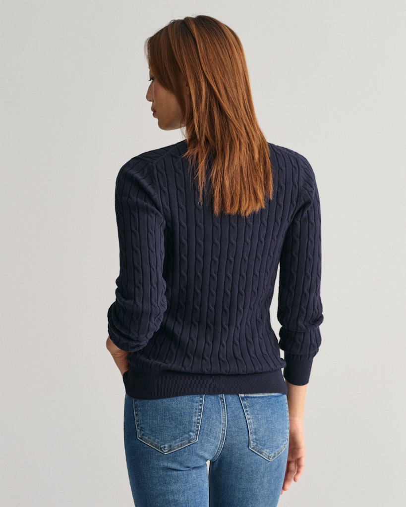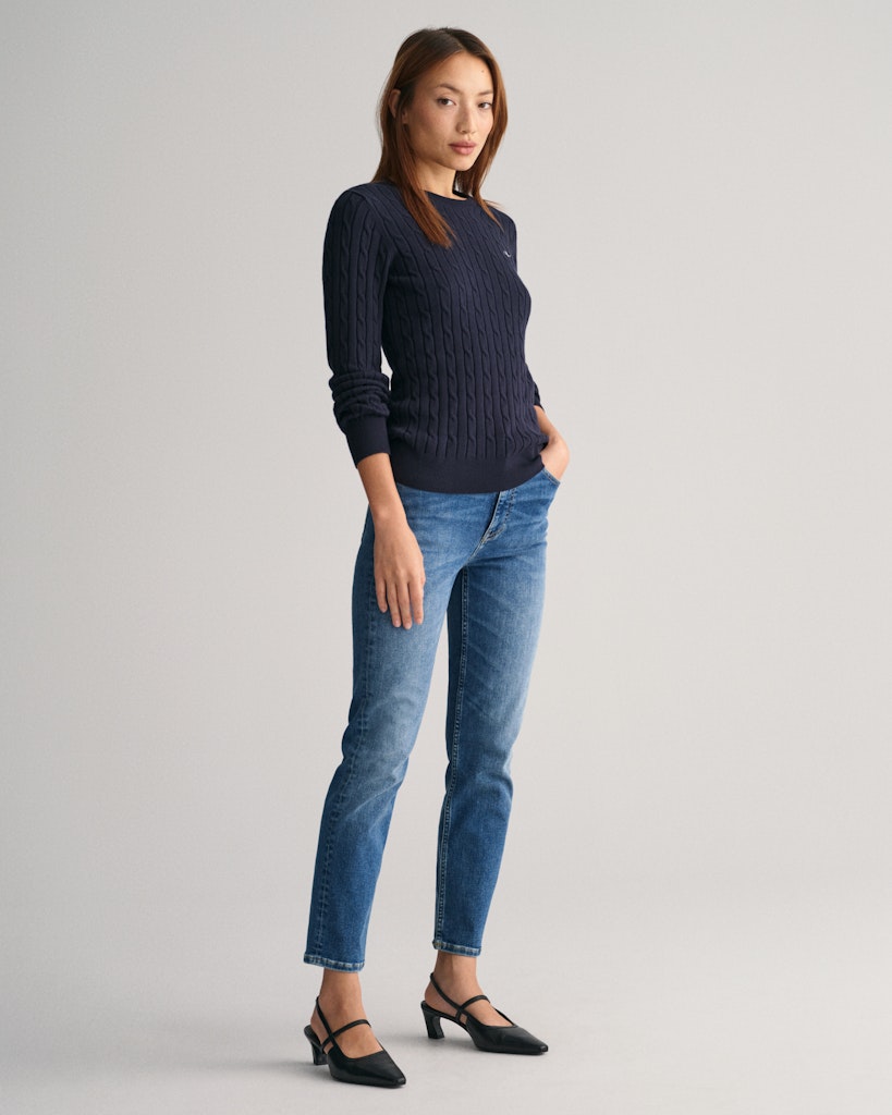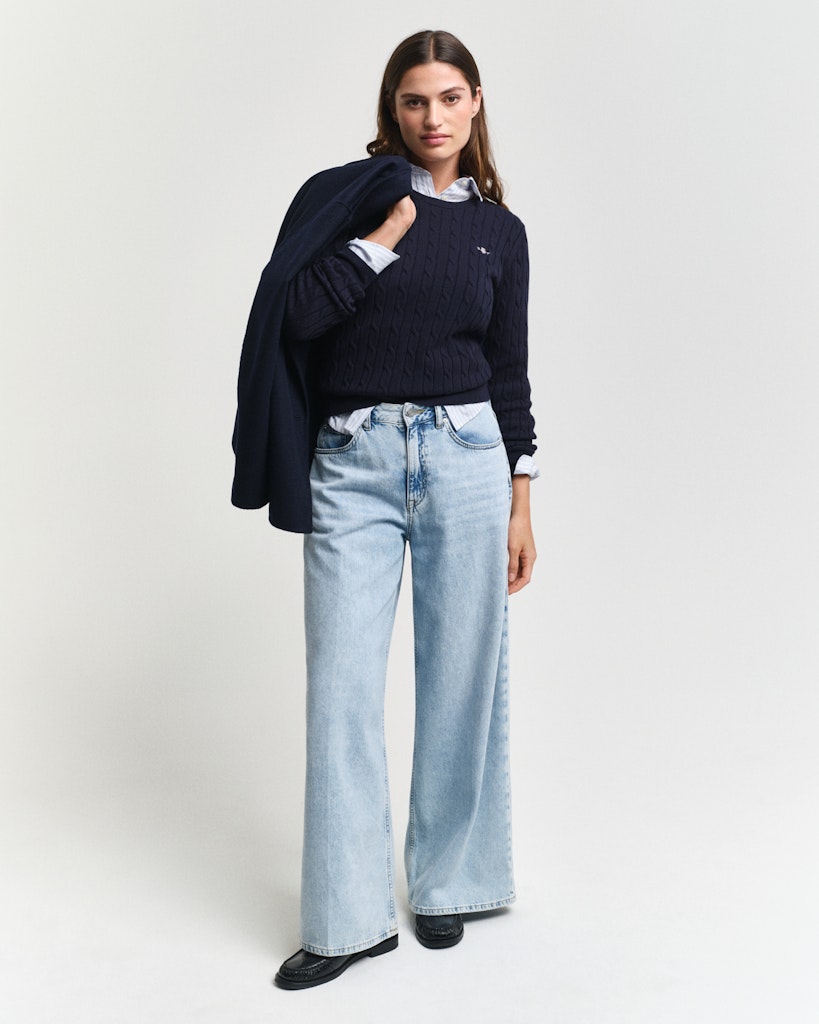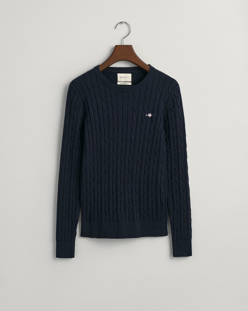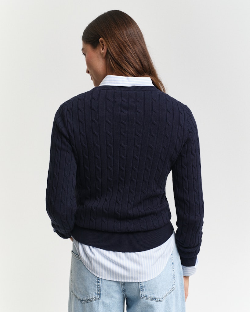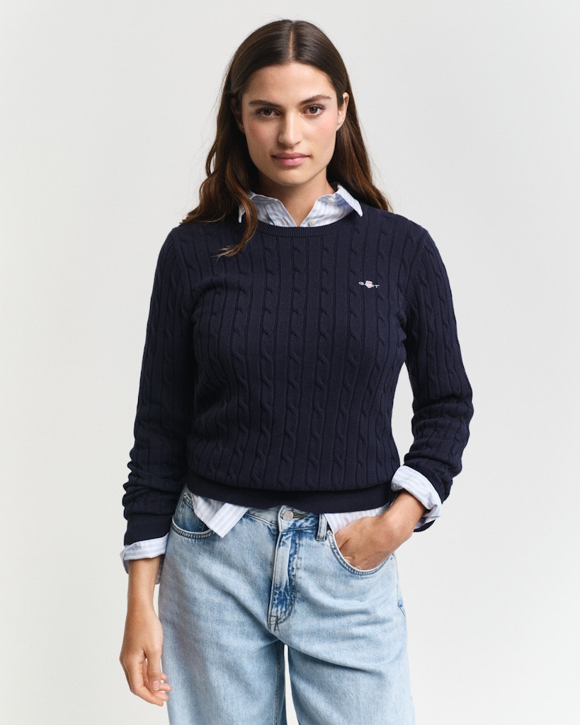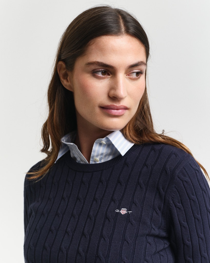 Zopfstrick Rundhalspullover aus Stretch-Baumwolle