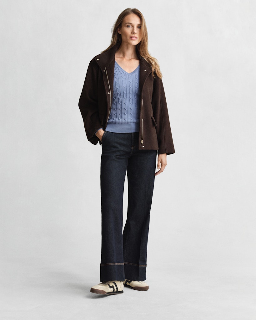 Zopfstrick V-Neck Pullover aus Stretch-Baumwolle